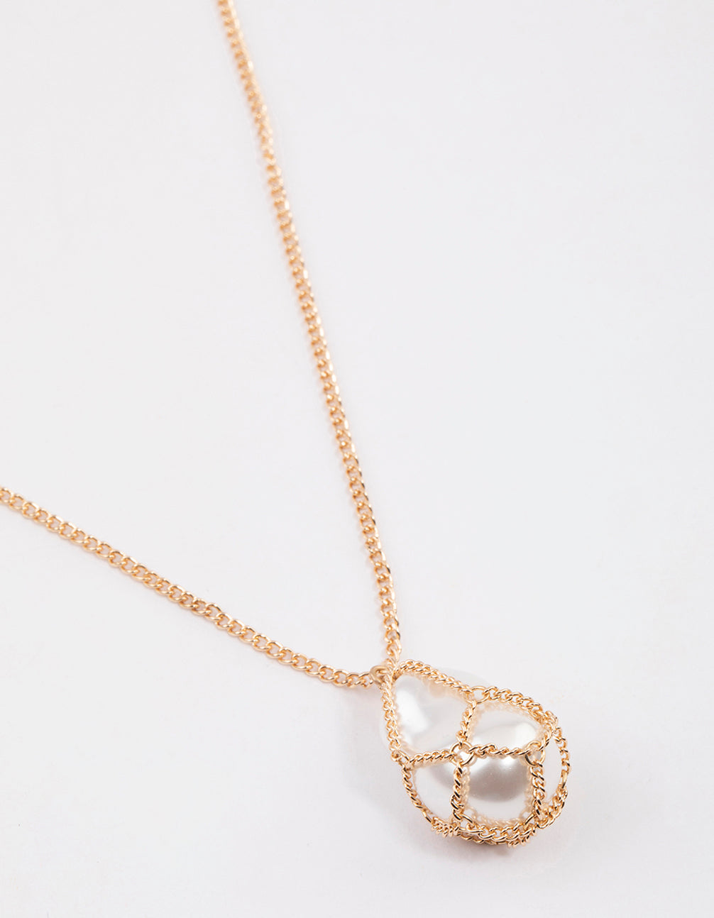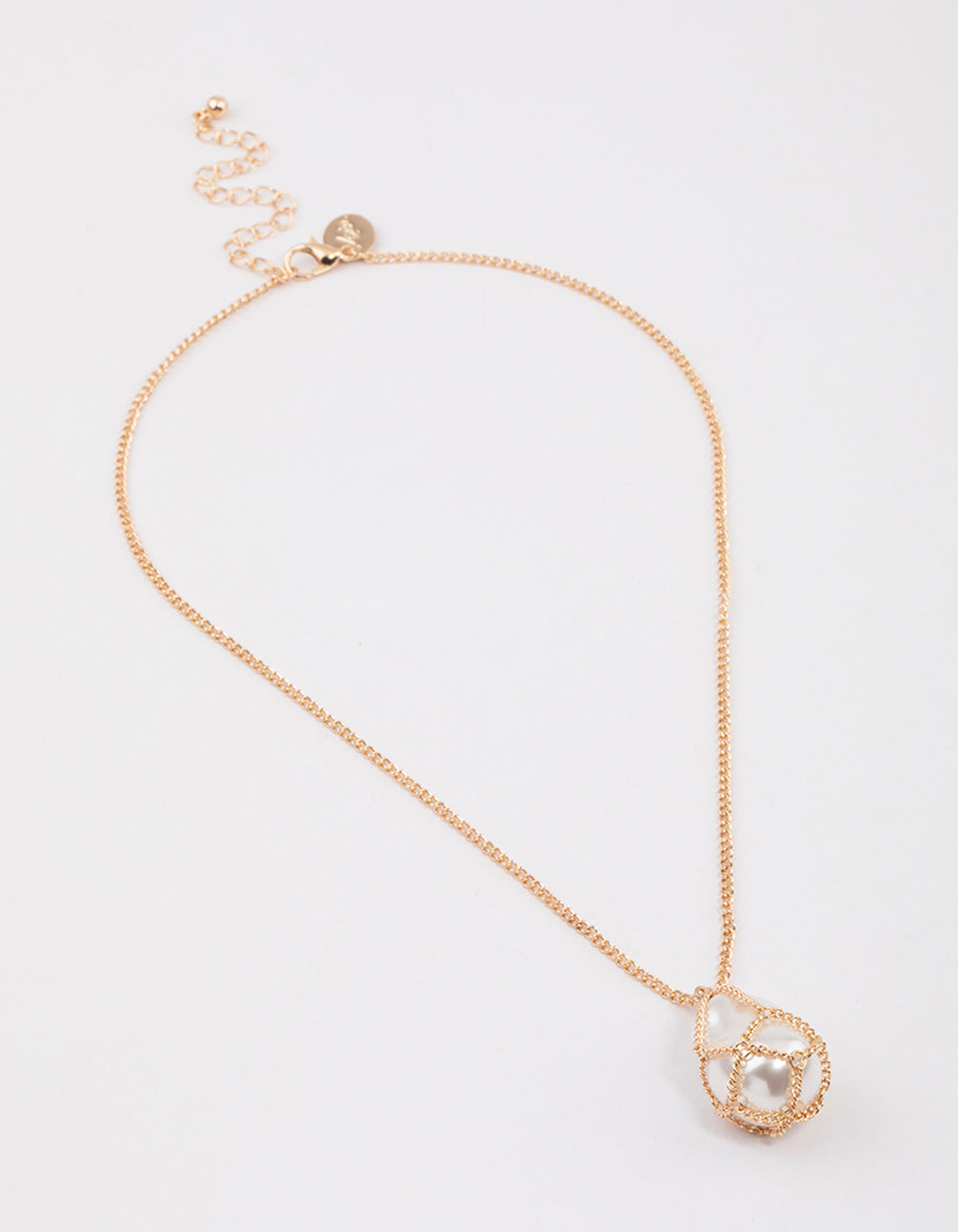 For a signature look, style this gorgeous gold-toned pendant. This chain necklace features a caged pearl detail for a unique and sophisticated finish.