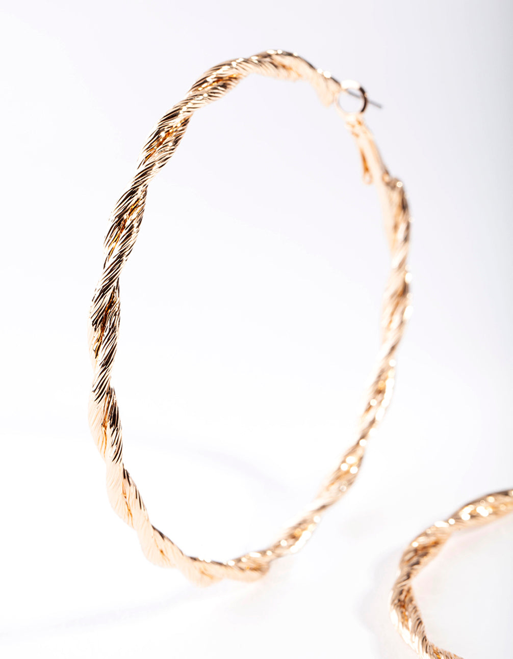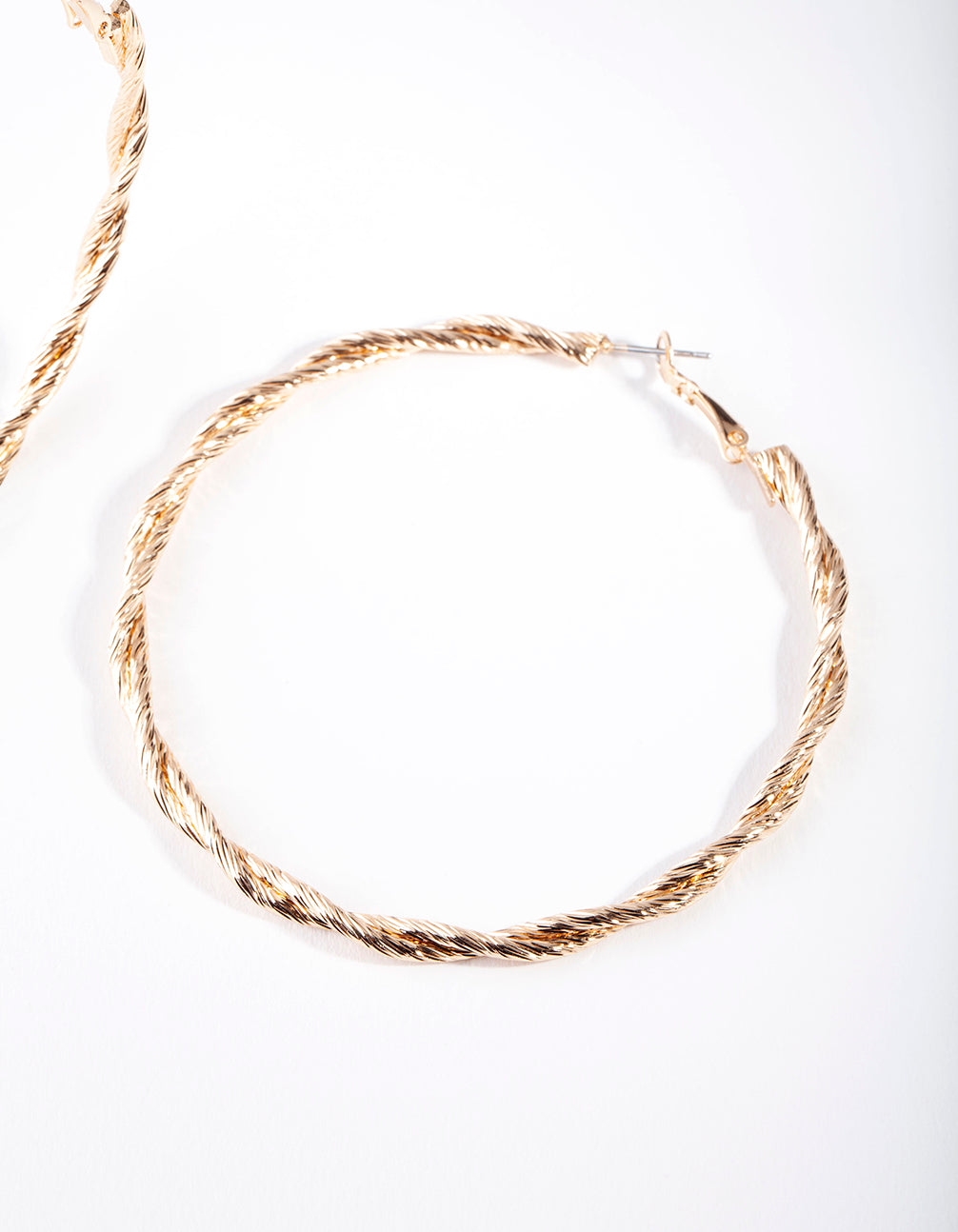 Statement jewellery is the ultimate way to add that extra touch of style to your look. This pair of hoop earrings do just that, they've got a gold-toned setting and a large double twisted design.