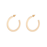 A pair of flat gold-toned earrings with a slightly textured design.