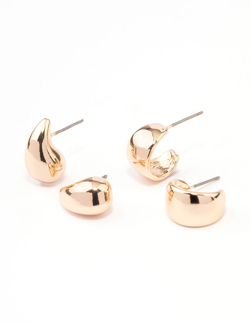 Level up your look with this gold-toned earring pack containing two sets of pear-shaped hoop earrings.