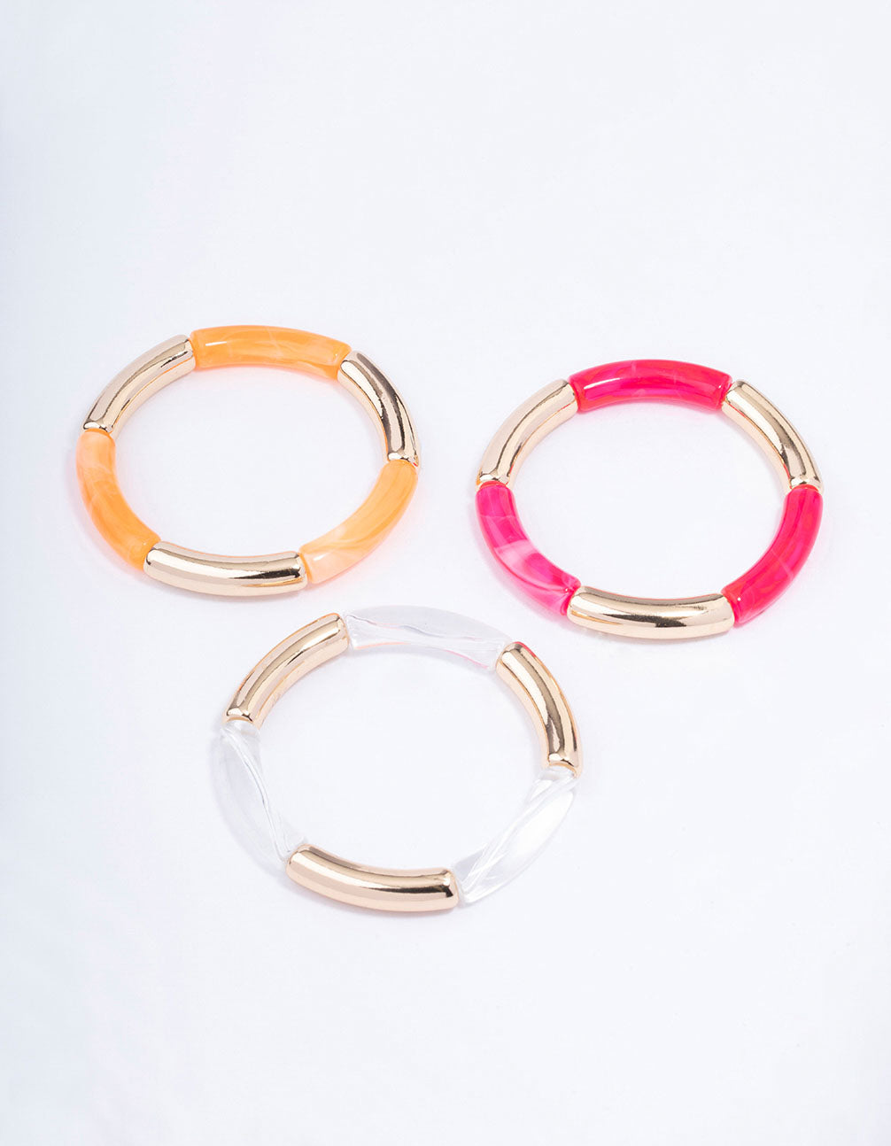 - This bracelet pack contains three individual, gold-toned bracelets that can be styled together or solo.