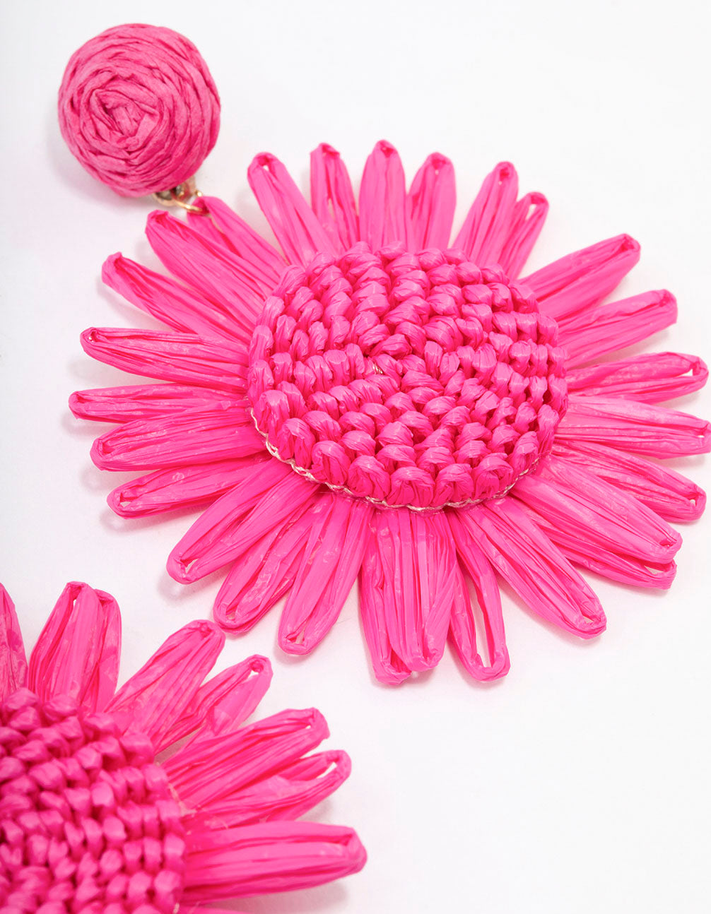 Gold Raffia Flower Drop Earrings