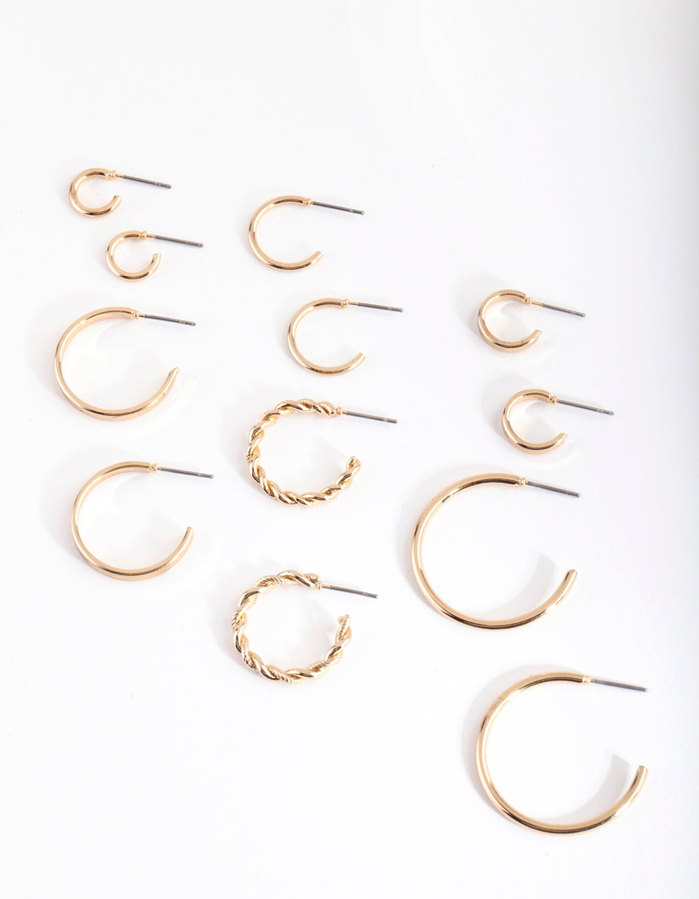 You're sure to find the perfect pair with this 6 pack of gold-toned hoop earrings. This pack comes with a variety of sizes and finishes.