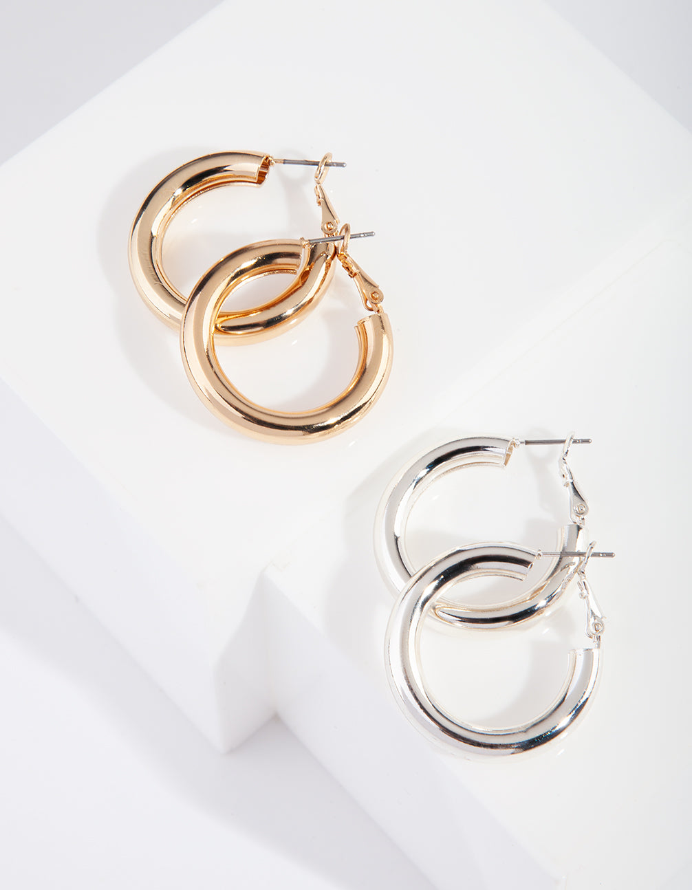 Add some fun to your outfit with this mixed metal-toned hoop earring pack.