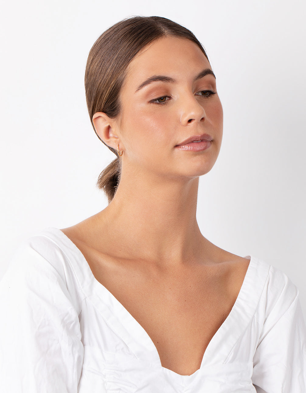 A pair of gold-plated sterling silver hoop earrings with a diamond cut finish.