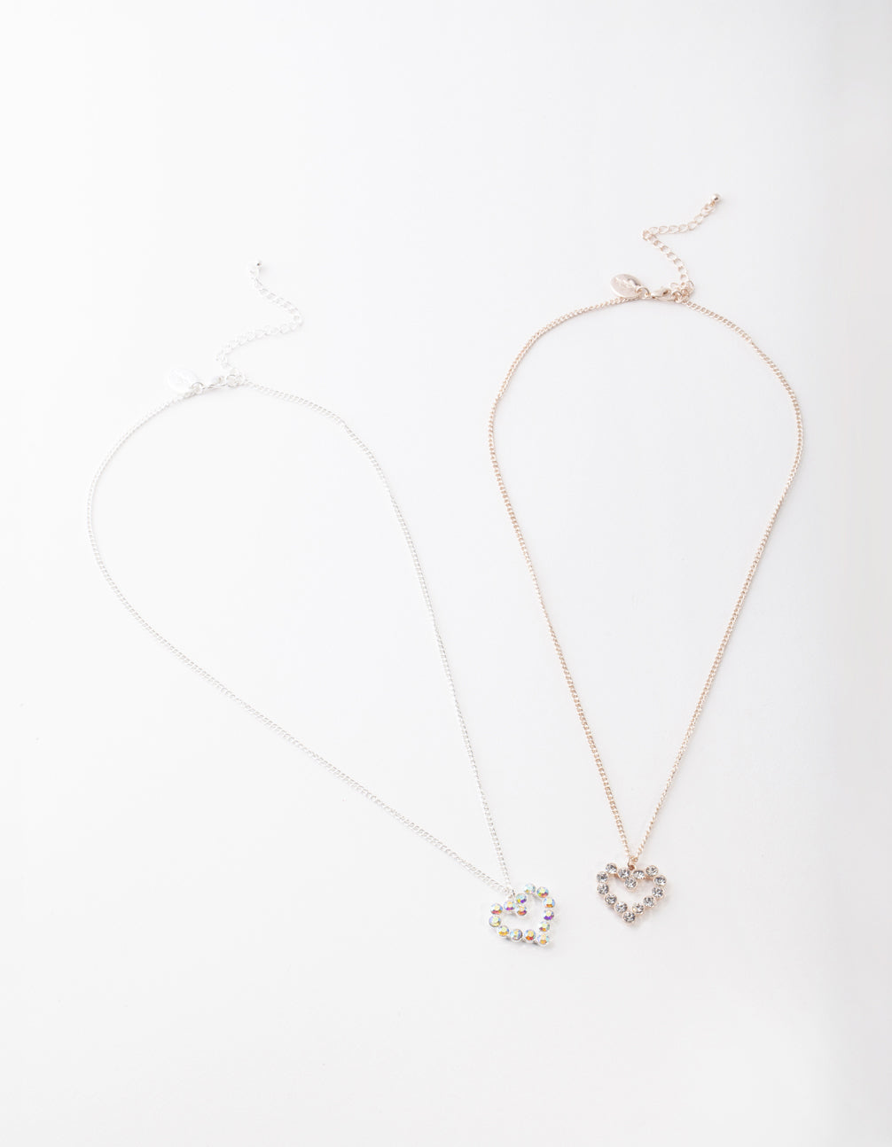 Give the perfect gift to that special someone or treat yourself with this mixed metal diamante embellished heart pendant necklace pack.
