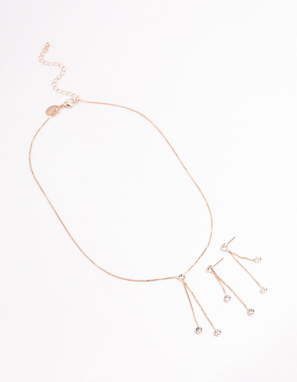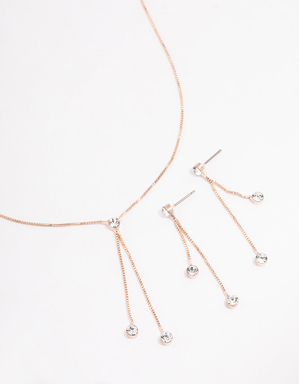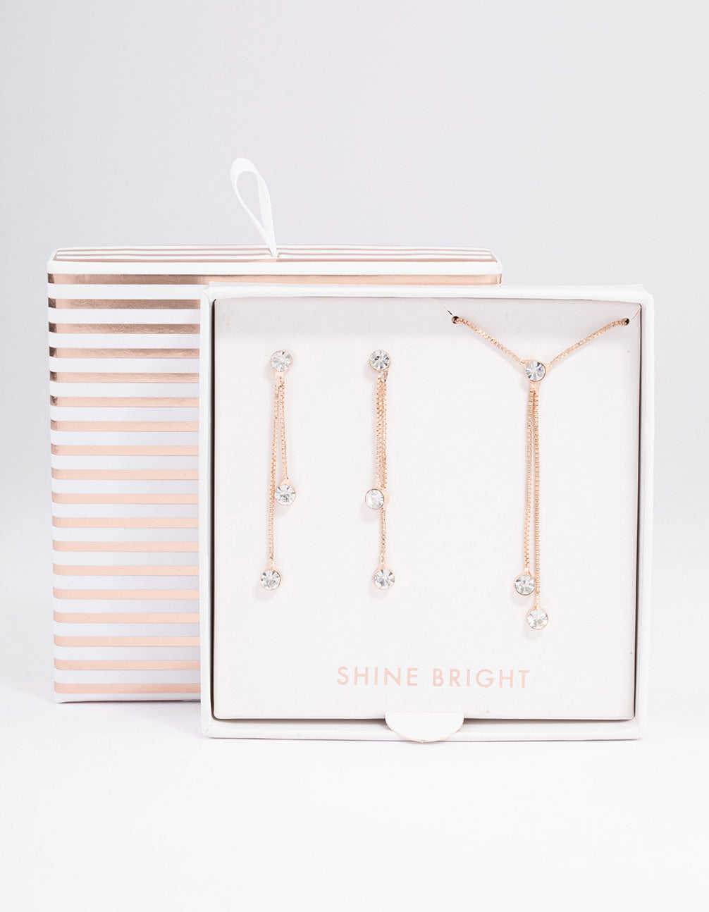 Rose Gold Diamante Drop Earrings Necklace Gift Box