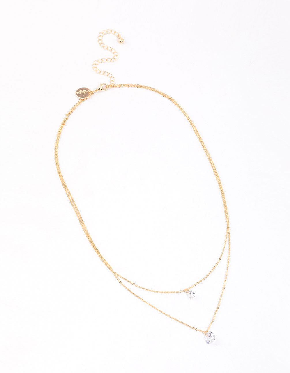 - Style this Gold Double Row Cubic Zirconia Necklace with a dainty choker and pop it back in its pouch when you're done styling.