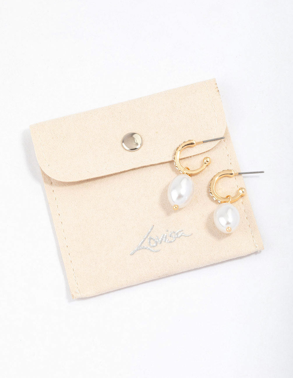 Gold Diamante Pearl Drop Huggie Earrings & Polishing Set