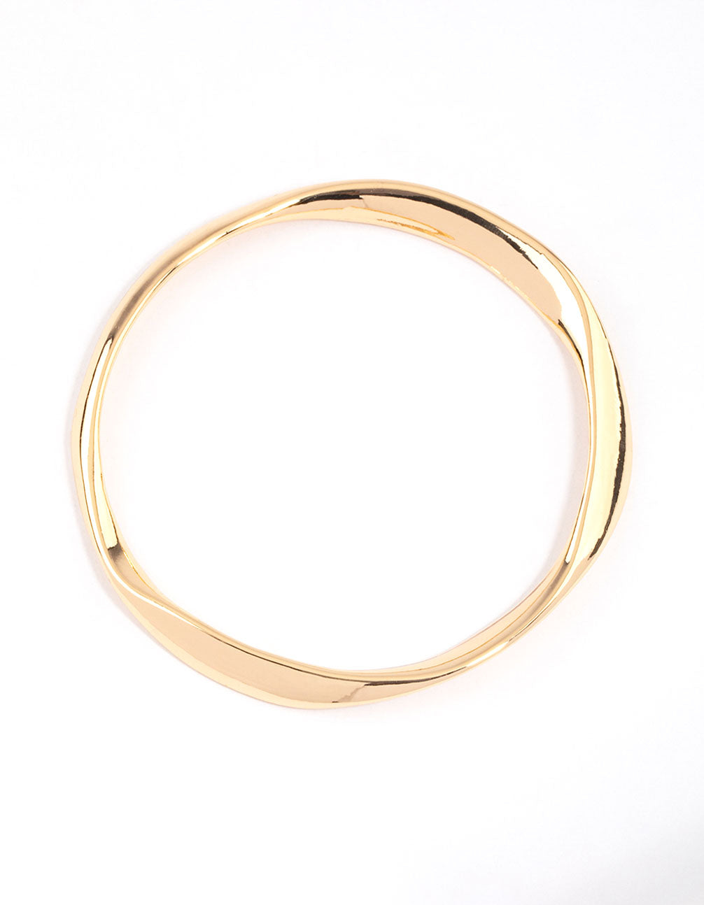- Style this Gold Warped Bangle with a timeless chain bracelet for a layered look. When you're done styling, pop your pieces back in their pouch to help them keep their shine.