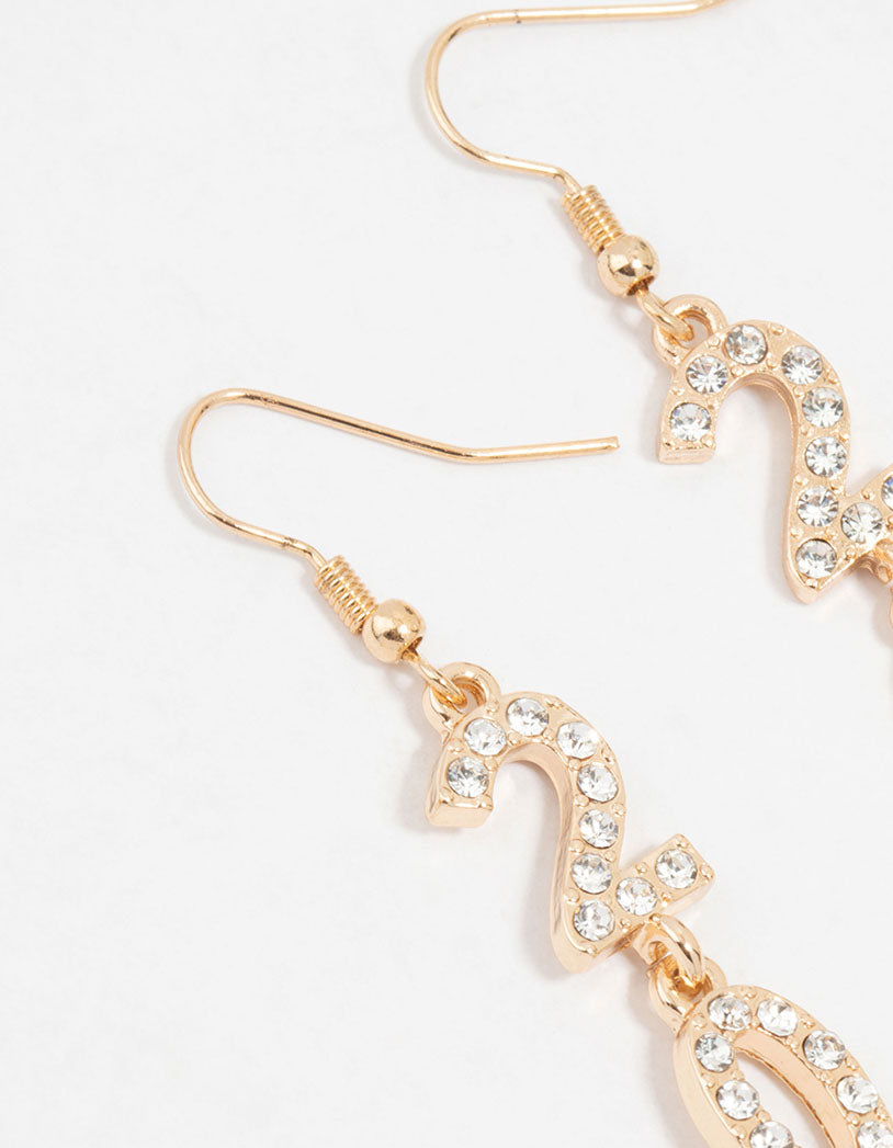Shine bright this New Year's Eve with these stunning gold toned diamante 2025 earrings! Perfect for a sparkling 2025 statement.