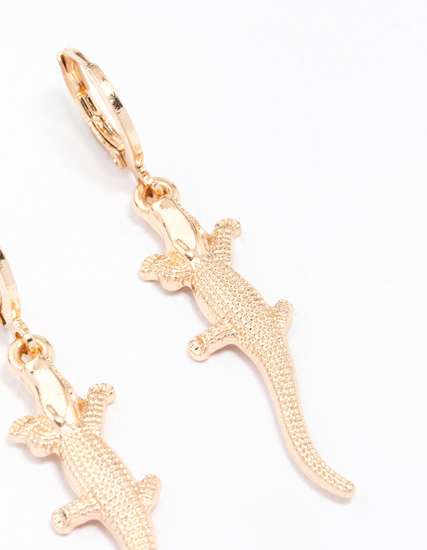Personalise your stack with these unique, gold-toned hoop earrings. These hoops feature a gorgeous, gold-toned setting and playful alligator or crocodile design.
