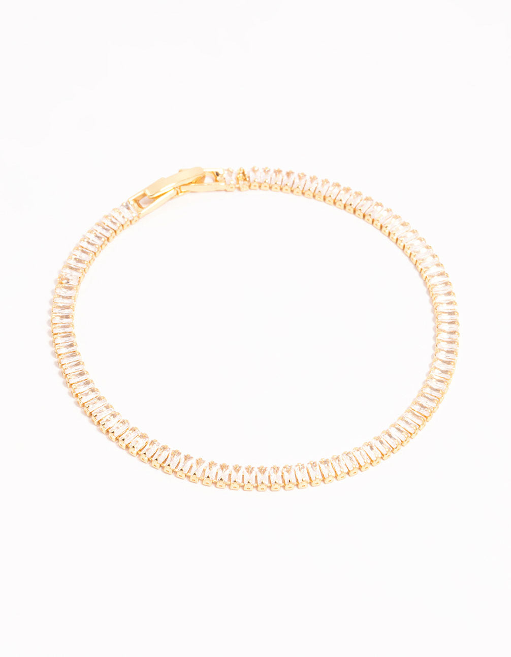 Upgrade your style with this stunning Gold Cubic Zirconia Tennis Bracelet. Its dazzling crystals offer a sparkling look that pairs well with casual and formal outfits.