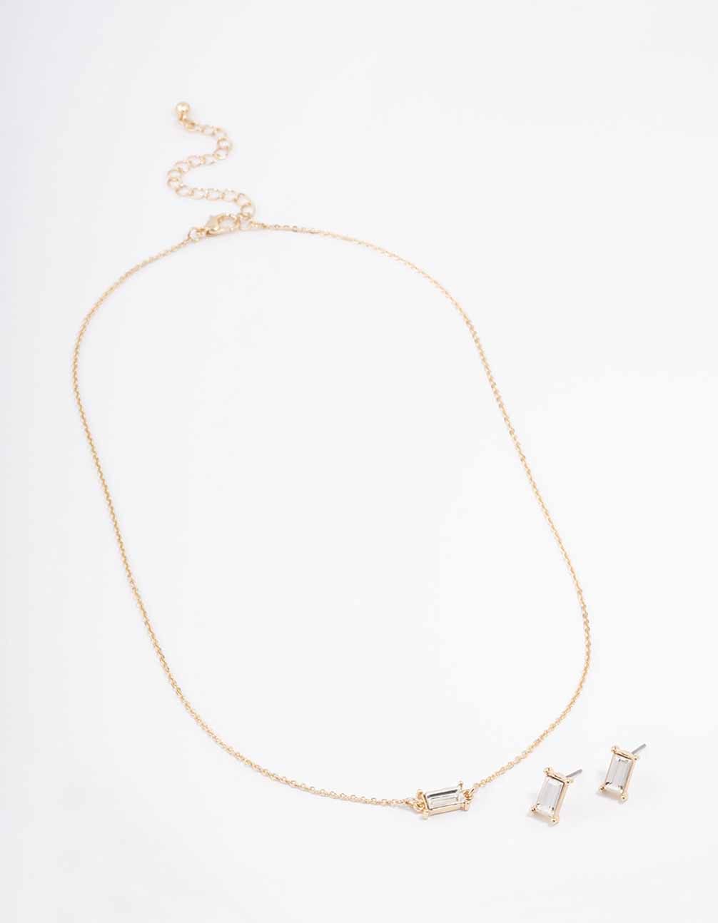 Surprise your loved ones with this Gold Baguette Jewellery Set, a modern must-have in any jewellery collection.