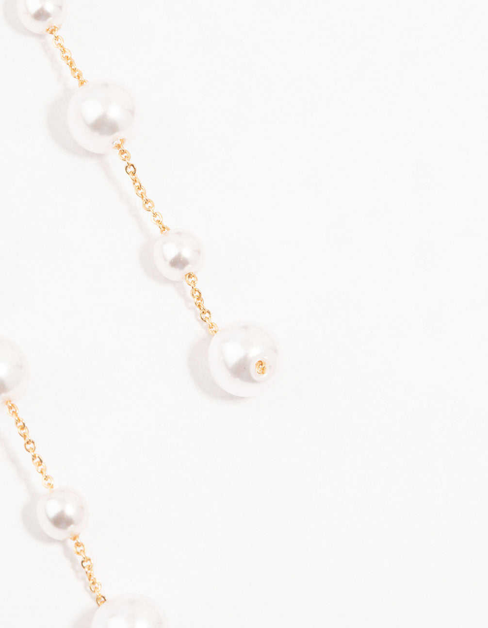 Gold Plated Baguette Station Mixed Pearl Earrings