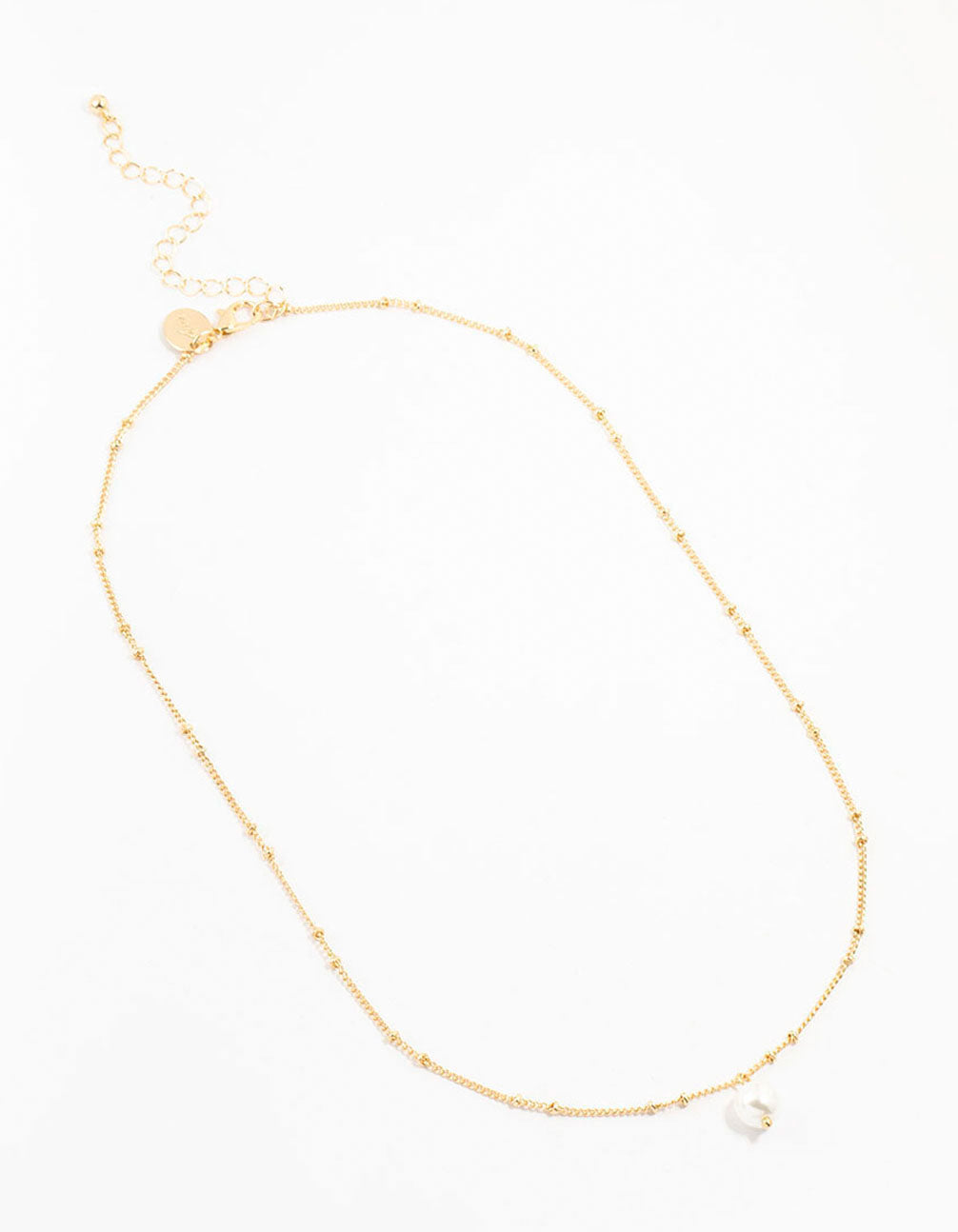 Elevate your look with this captivating Gold Ball Chain Pearl Necklace. The gleaming links and shimmering pearls create a chic piece. This versatile chain necklace is the perfect accessory to enhance your natural beauty and make you shine.