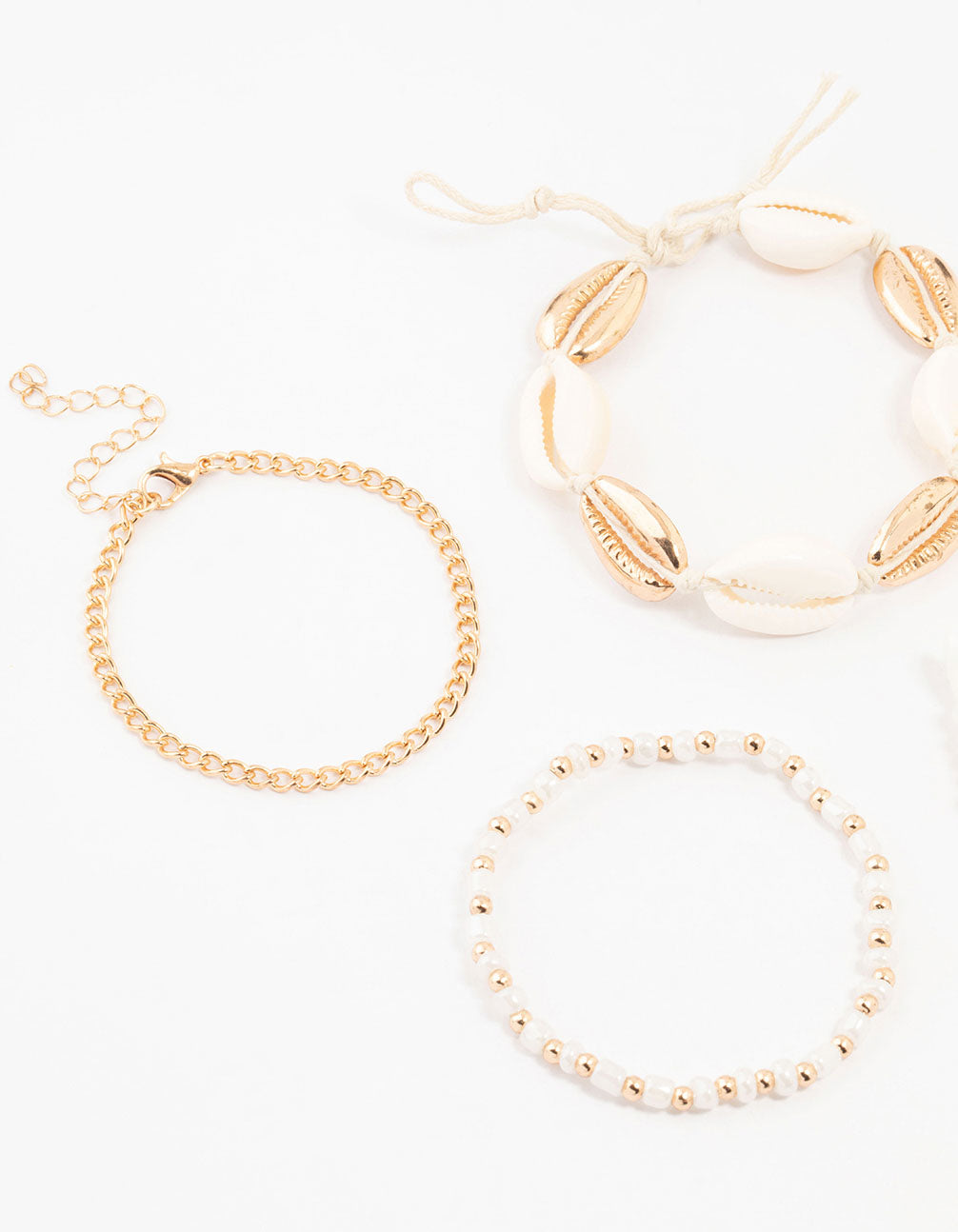 Gold Beaded & Large Shell Bracelets 4-Pack