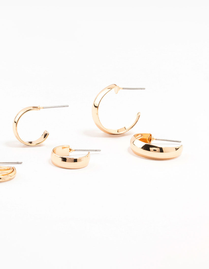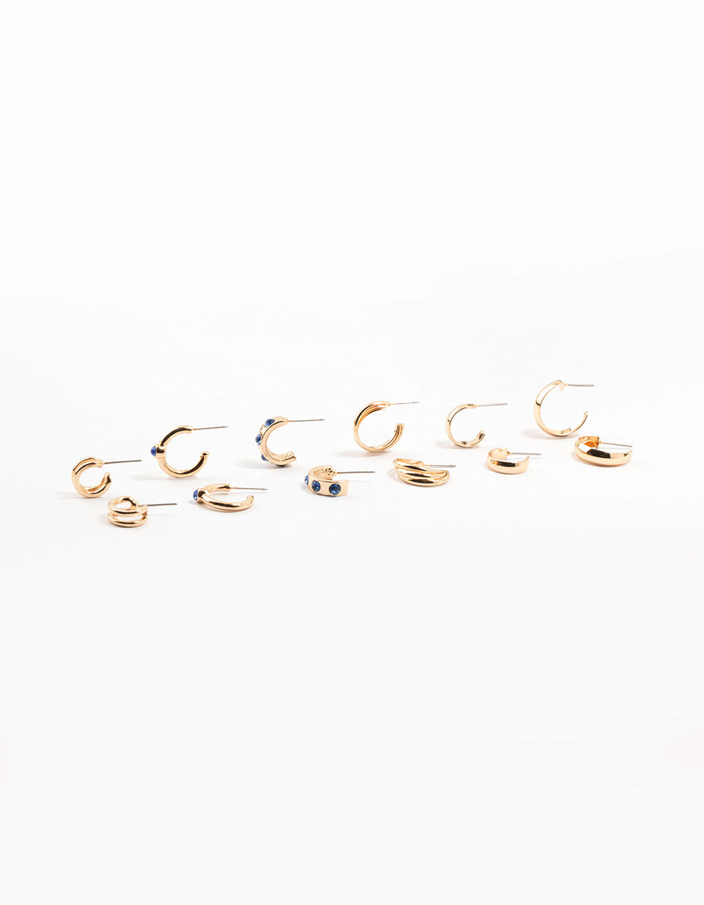Gold Bezel Diamante Hoop Earrings 6-Pack