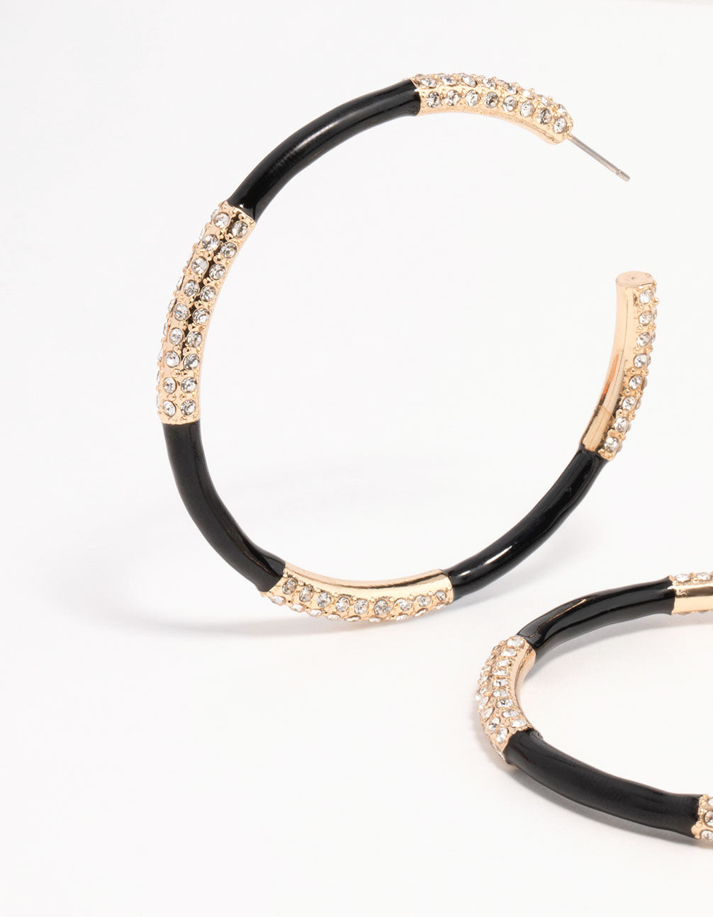For a timeless addition to your stack, style these lovely gold and black hoops. These large hoop earrings feature a two-toned design, perfect for adding a touch of drama to your stack.
