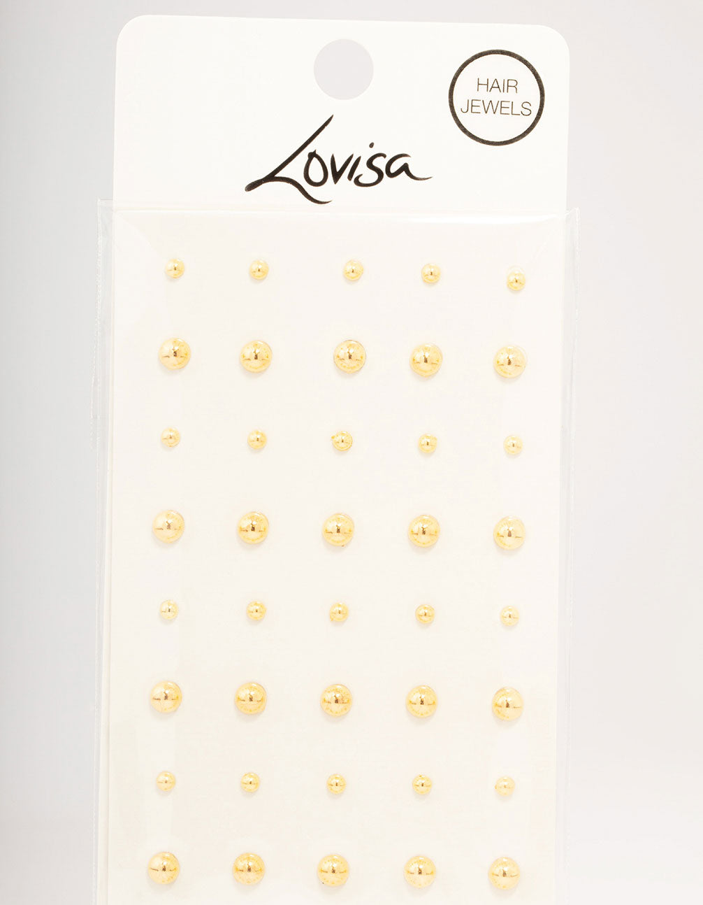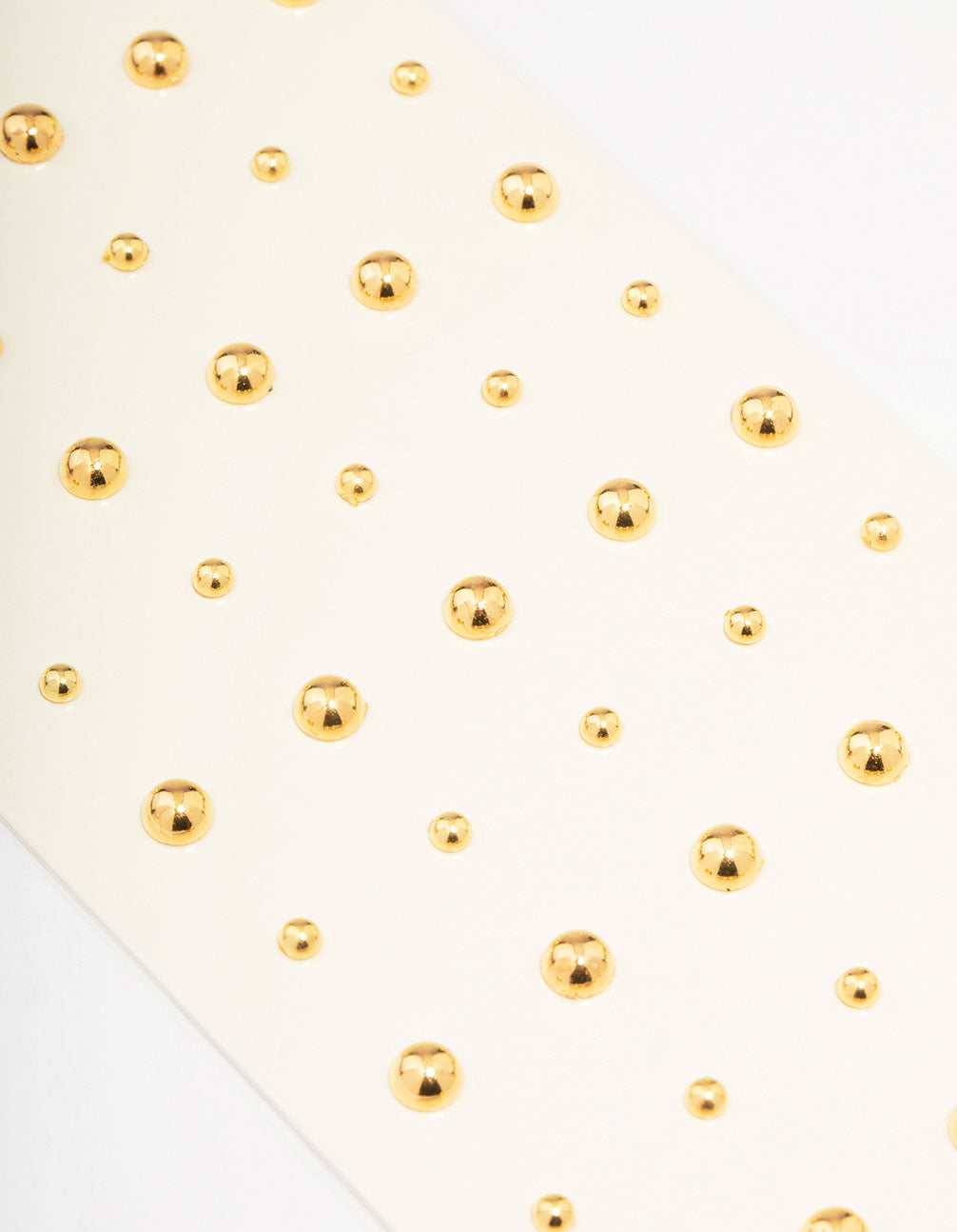 Embellish your look with this set of self-adhesive face jewels. This pack of gems contains a mix of round gold jewels, perfect for accentuating a makeup look or adding interest to your cheekbones at your next festival!
