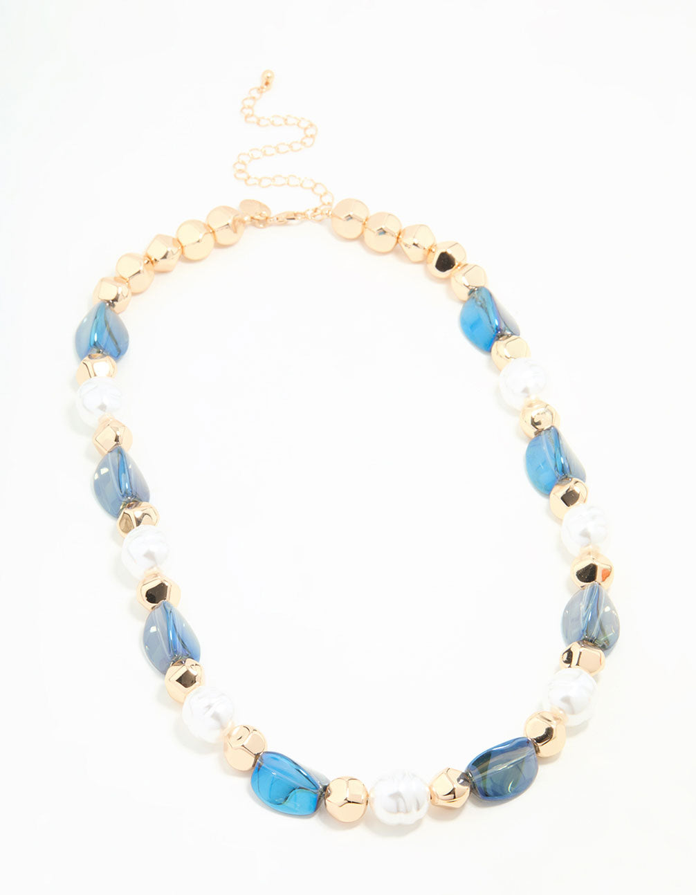 Gold Blue Beaded Short Necklace