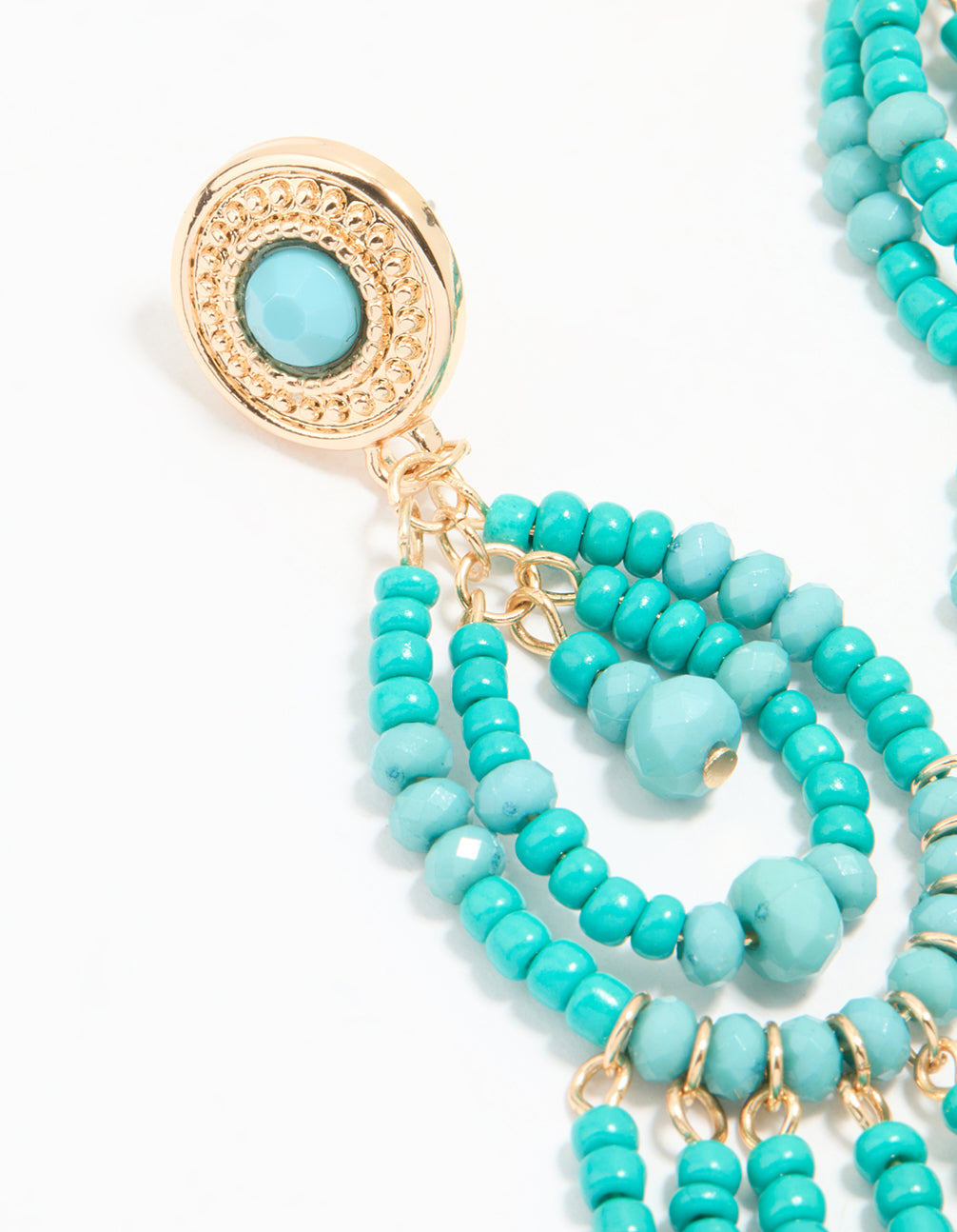 Gold Blue Beaded Teardrop Drop Earrings
