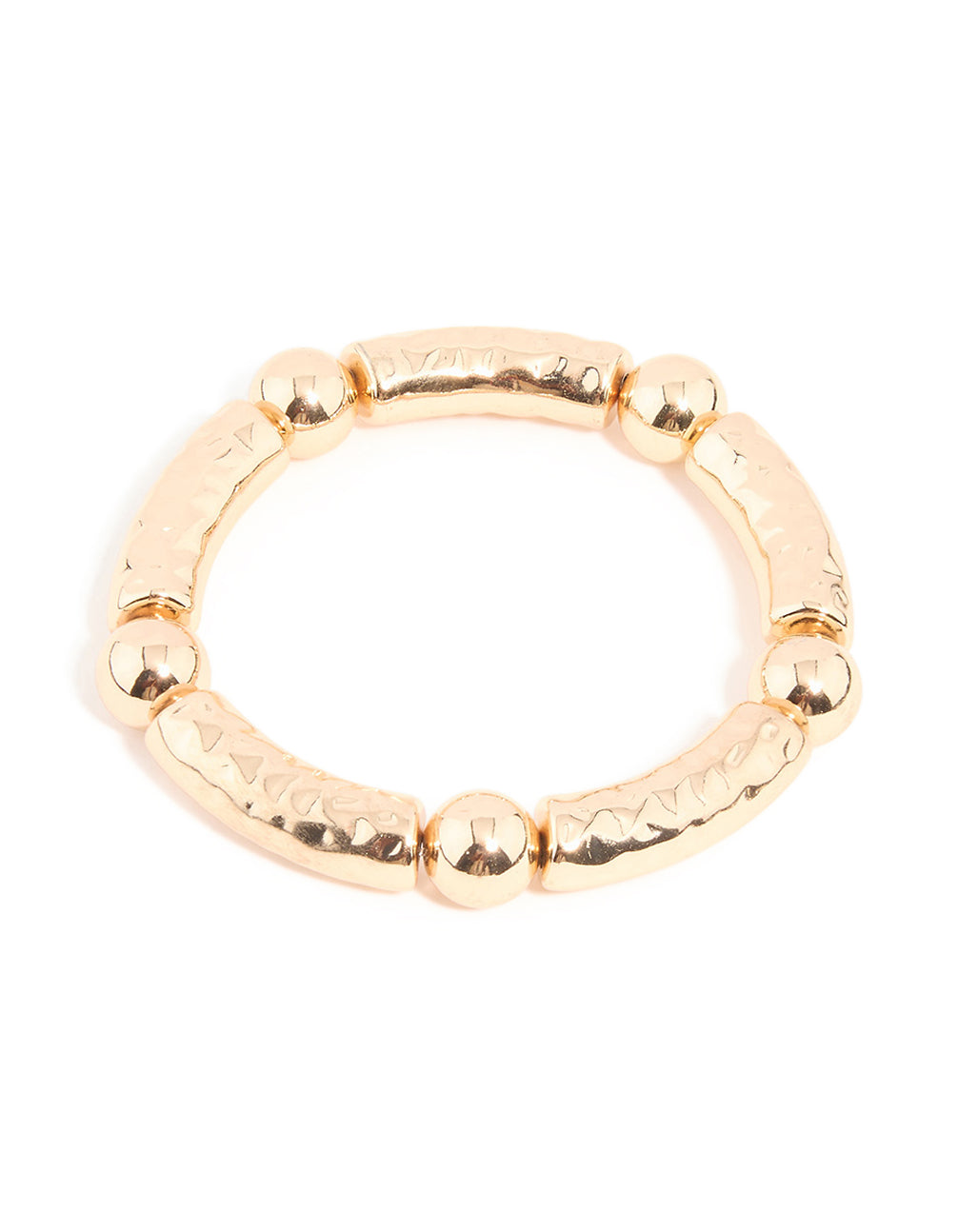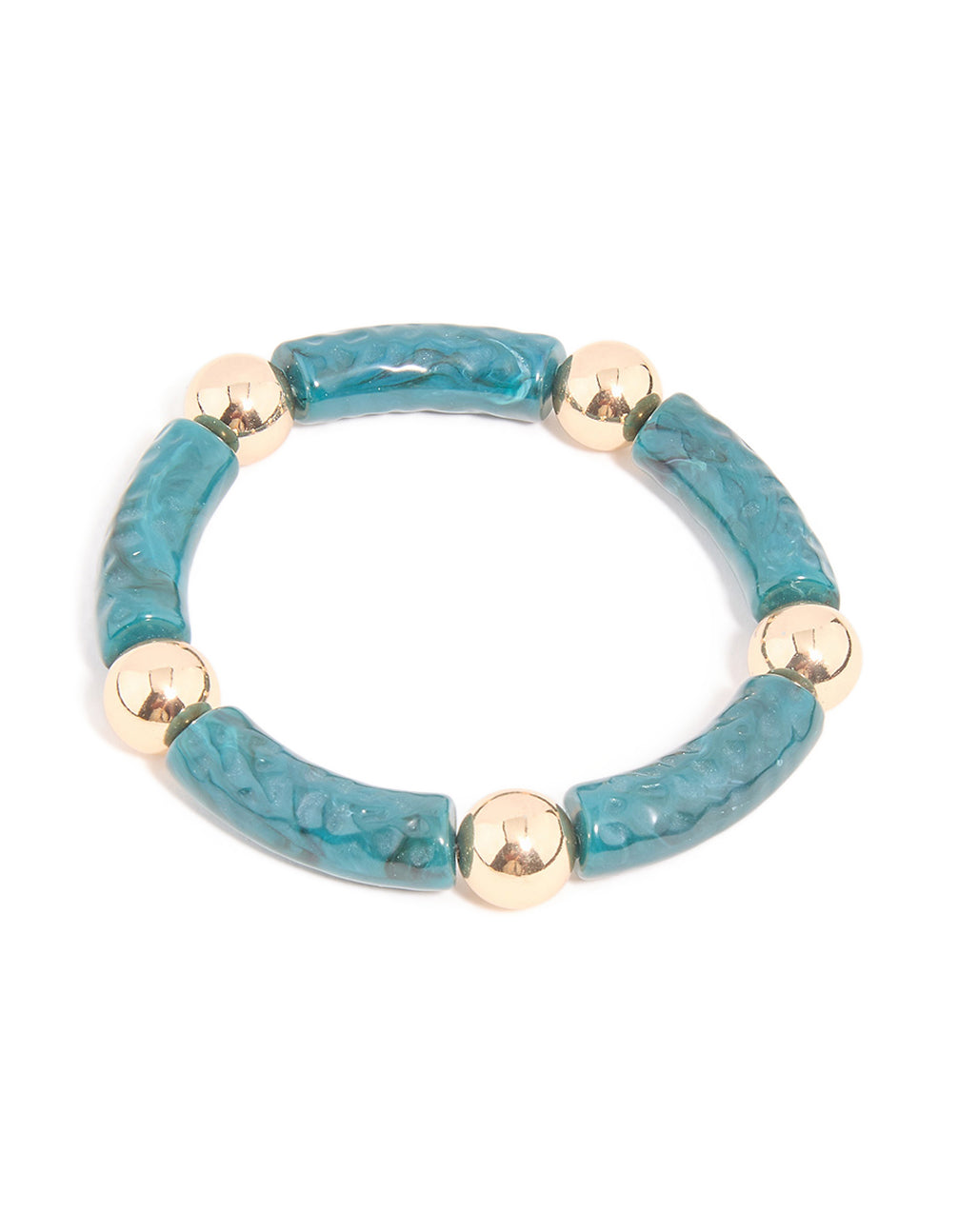 Elevate your accessory game with this Gold & Blue Beaded Textured Stretch Bracelets Pack. This stylish jewellery set includes two stretch bracelets: one with a molten textured gold-tone beaded design and the other blending gold and blue tones and beads with the same striking texture. Perfect for layering or wearing solo, these bracelets are a chic way to add a pop of colour and texture to your outfit.