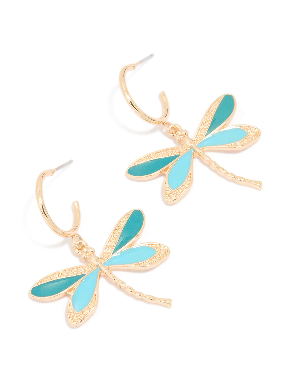 Add a whimsical touch to your jewellery collection with these Gold Blue Dragonfly Hoop Earrings. Perfectly blending playful charm with elegance, these hoops feature delicate dragonfly designs accented with soft blue details. Crafted from gold-toned metal, they're lightweight and ideal for all-day wear, whether you're dressing up for a garden party or adding flair to your casual outfits. Pair them with a flowy sundress for a breezy, nature-inspired vibe or let them peek through tousled hair during a night out. These hoop earrings are perfect for anyone seeking stylish, unique accessories with a youthful twist. A must-have for adding personality to your look!