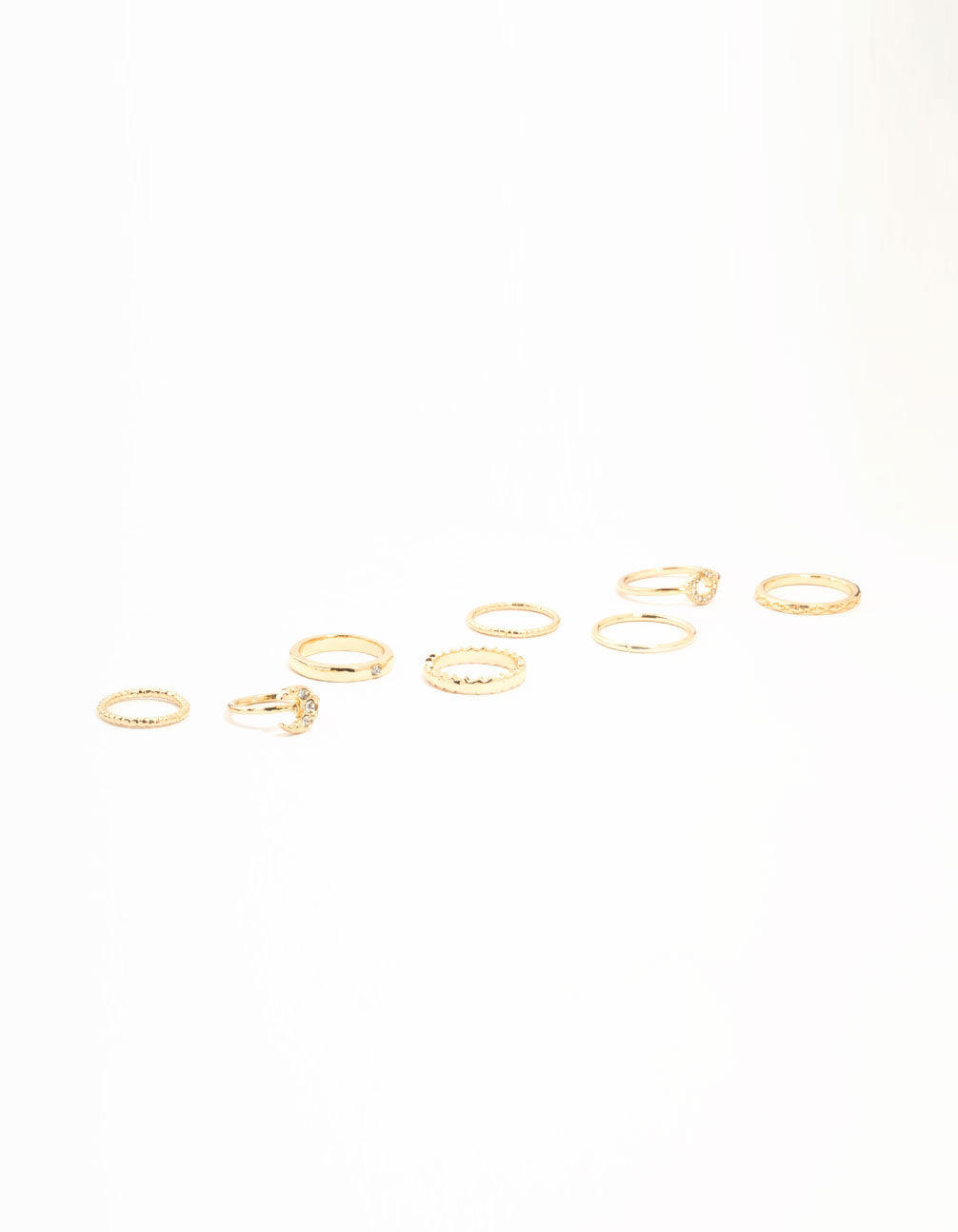 Gold Celestial & Sleek Mixed Rings 8-Pack