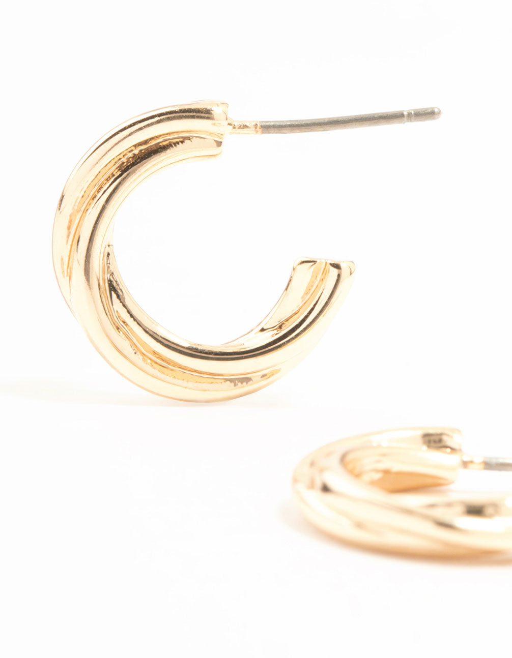 Enhance your style with these stunning gold huggie earrings. The modern twisted design and chic hoop silhouette create an on-trend, versatile look for day or night.