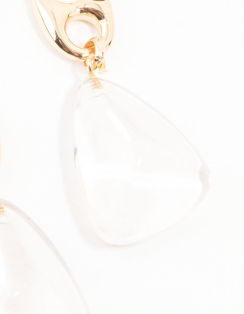 Turn heads with these show-stopping drop earrings! Featuring a dazzling clear drop in an abstract shape and a sleek gold finish, they're perfect for a glam vibe.