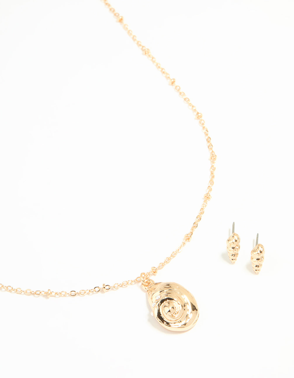 Dive into dreamy seaside style with this Gold Conch Shell Necklace & Earrings Set. This set features a delicate gold-tone necklace adorned with a charming conch shell pendant, paired perfectly with matching earrings for a cohesive beachy look. Ideal for adding a touch of coastal charm to your wardrobe, this set is perfect for holidays, beach outings, or elevating everyday outfits. Pair it with flowy dresses, linen shirts, or even a classic white tee for effortless elegance. Lightweight and versatile, this set makes a lovely gift or a must-have accessory for anyone who loves ocean-inspired jewellery. Whether you're channeling beach vibes or adding a playful twist to your look, this necklace and earring set is sure to make waves!