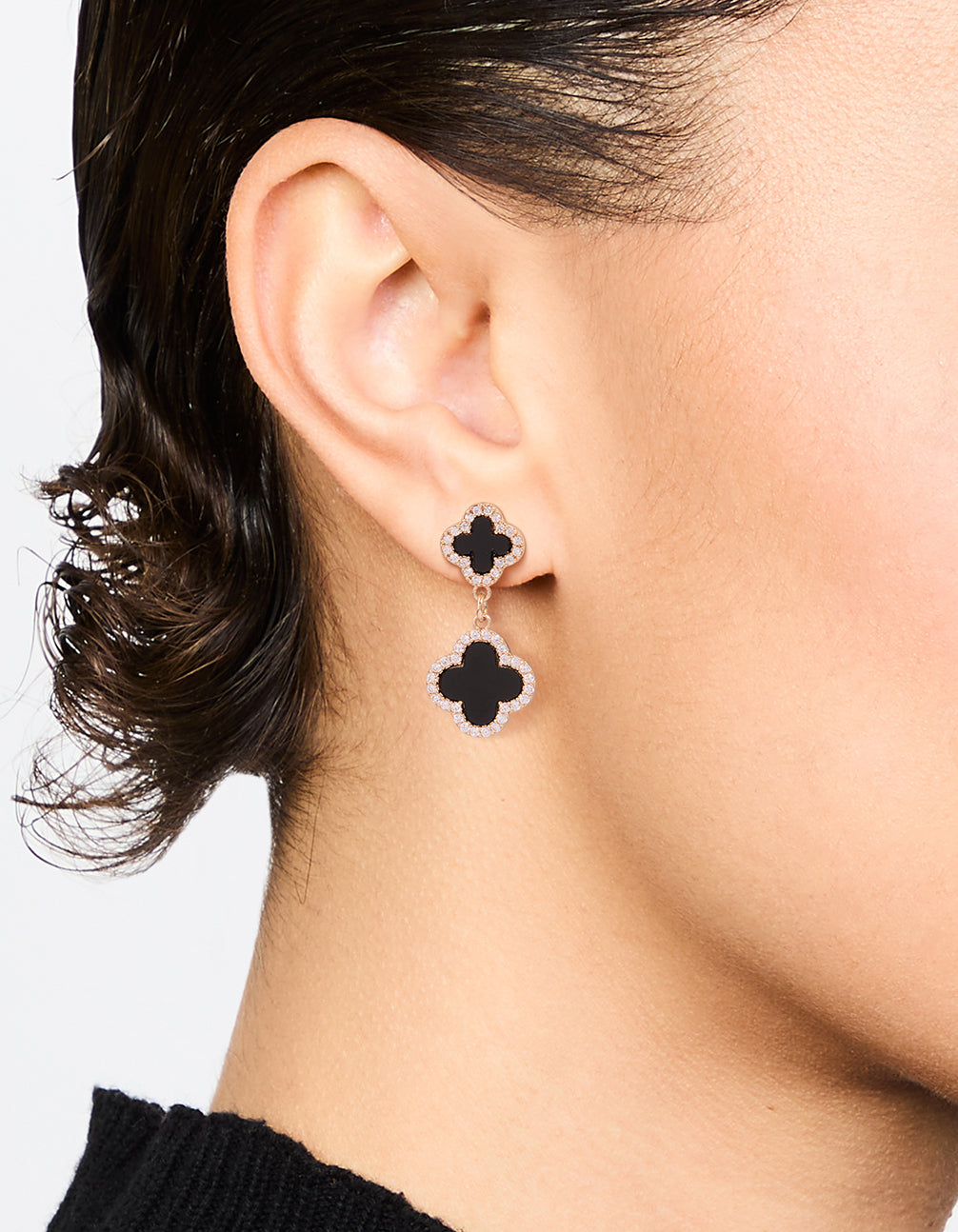 Gold Cubic Zirconia Black Flower Drop Earrings
