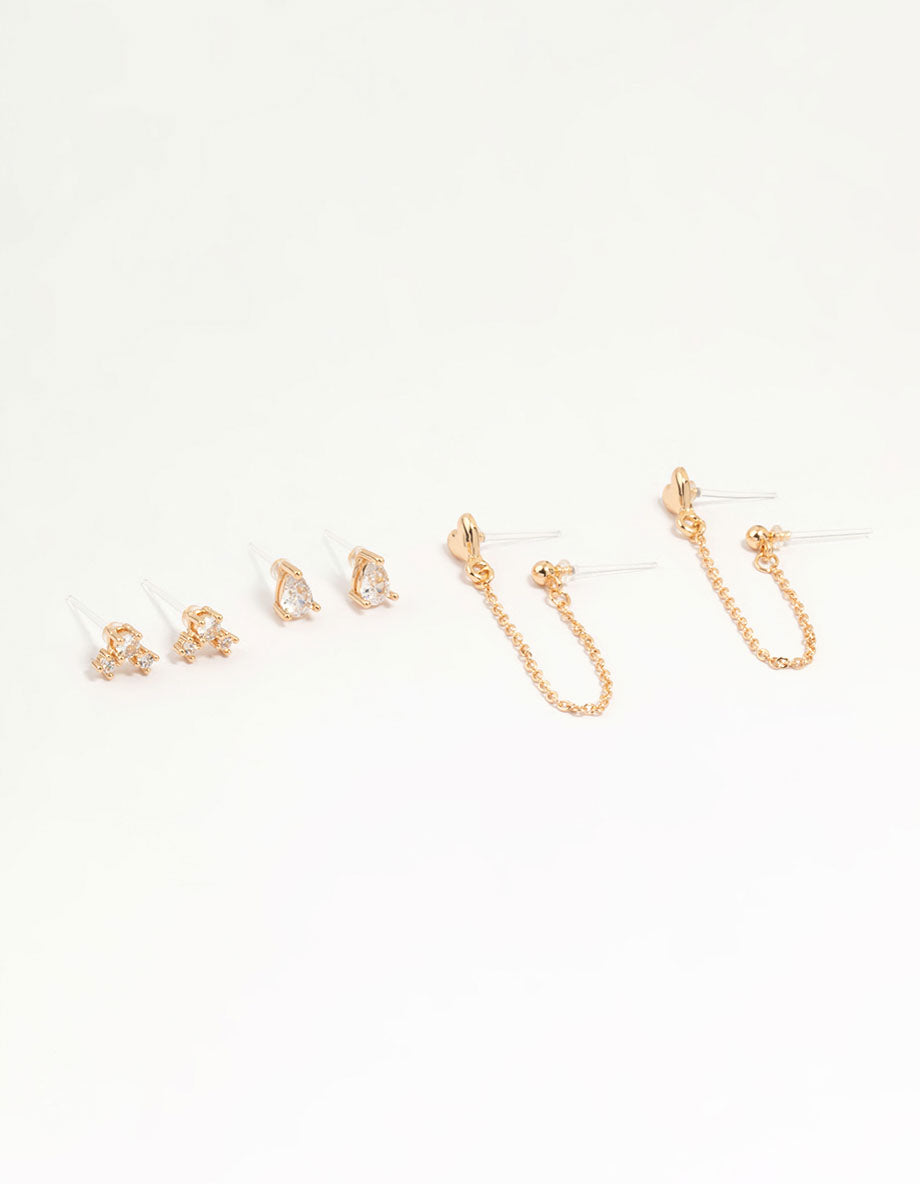 Gold Cubic Zirconia Chain Stud Earrings 4-Pack