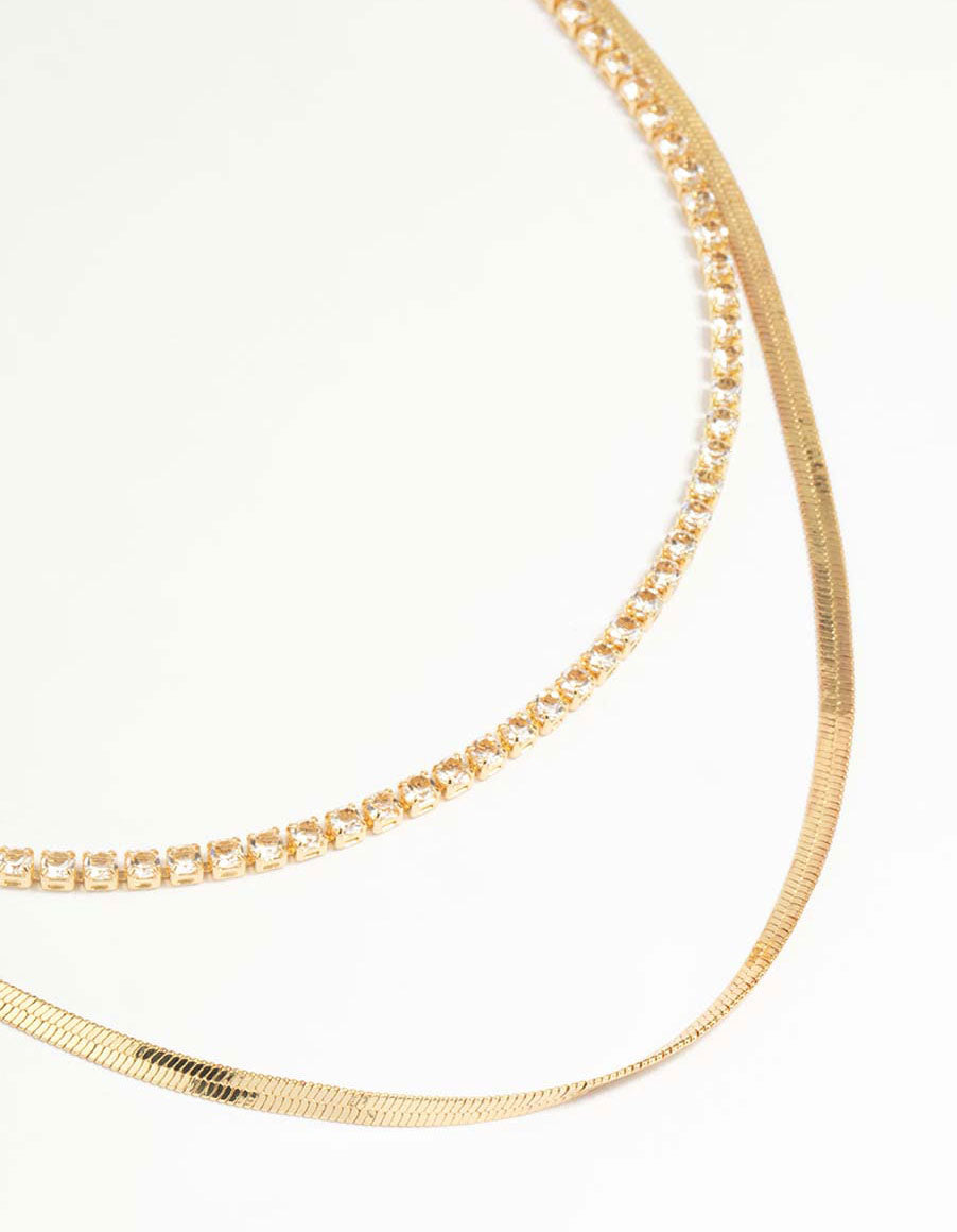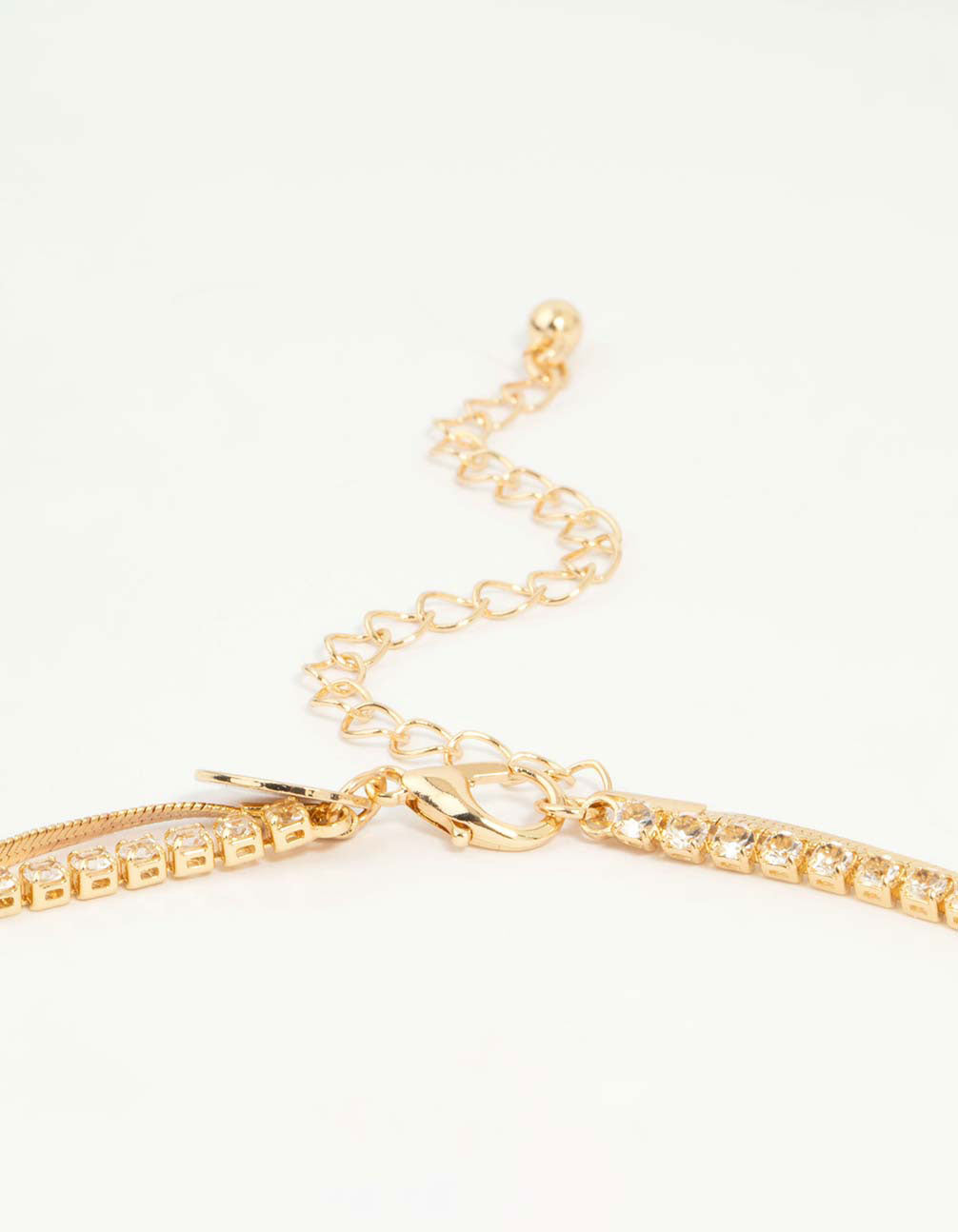 Gold Cubic Zirconia Diamante & Chain Layered Necklace