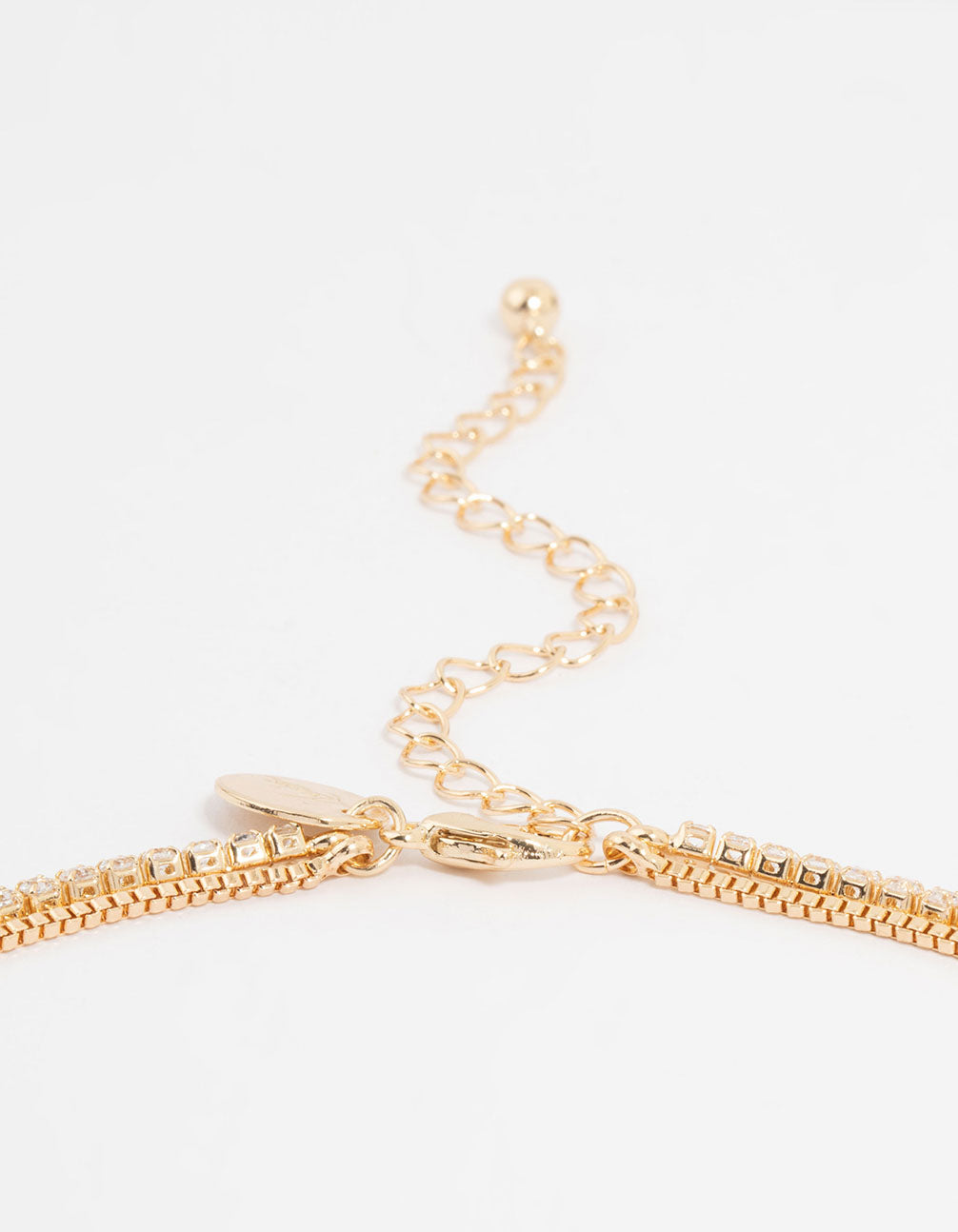 Gold Cubic Zirconia Earrings & Layered Necklace Set
