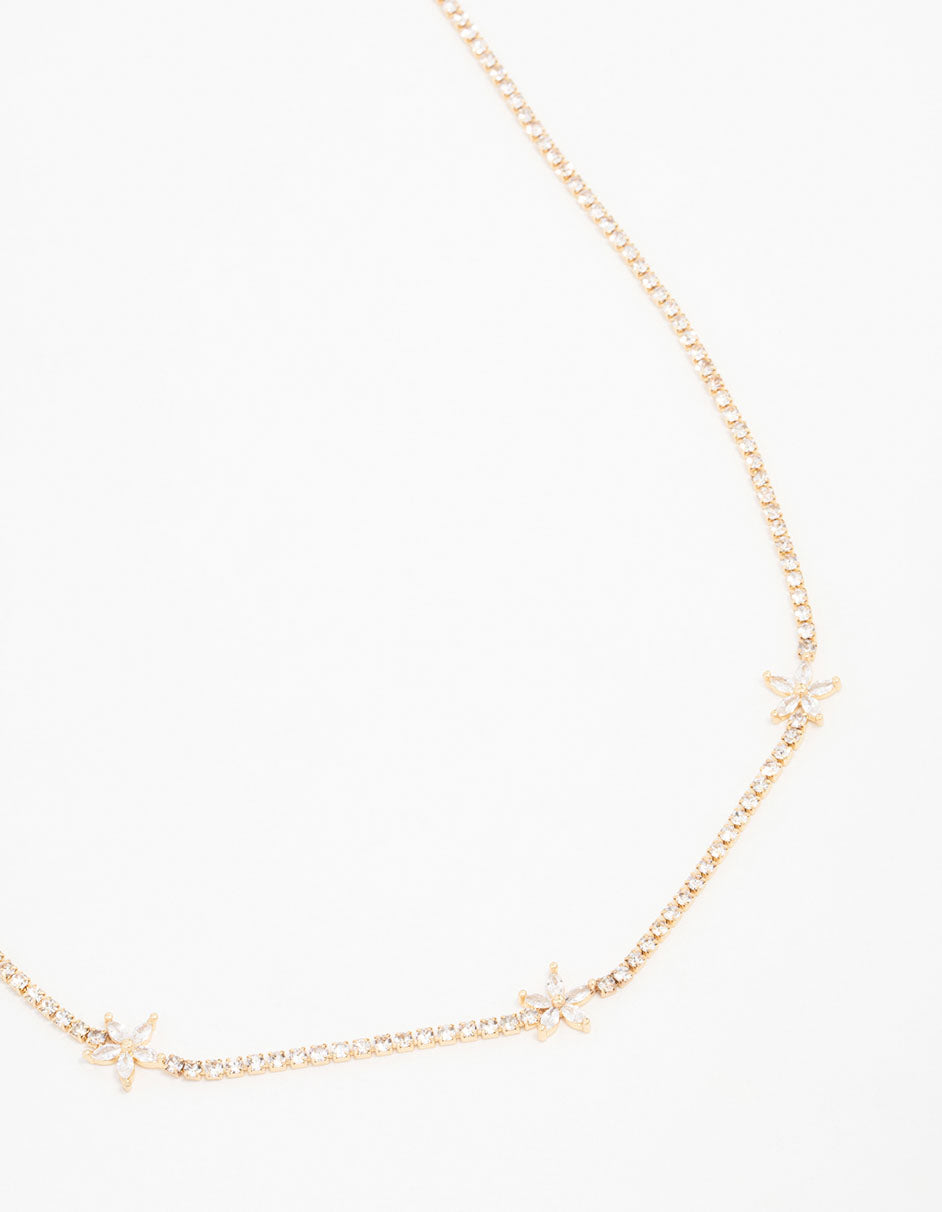 Gold Plated Cubic Zirconia Flower Tennis Necklace