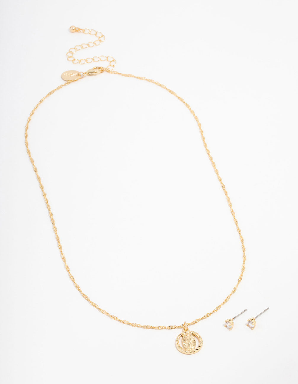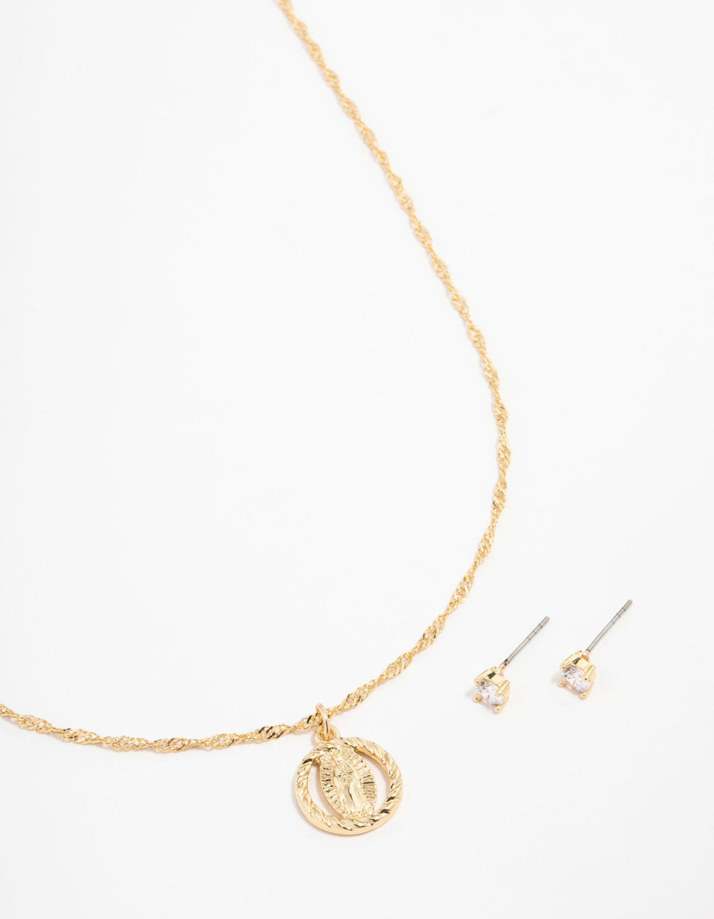 Gold Plated Cubic Zirconia Mary Round Necklace & Stud Earrings Set