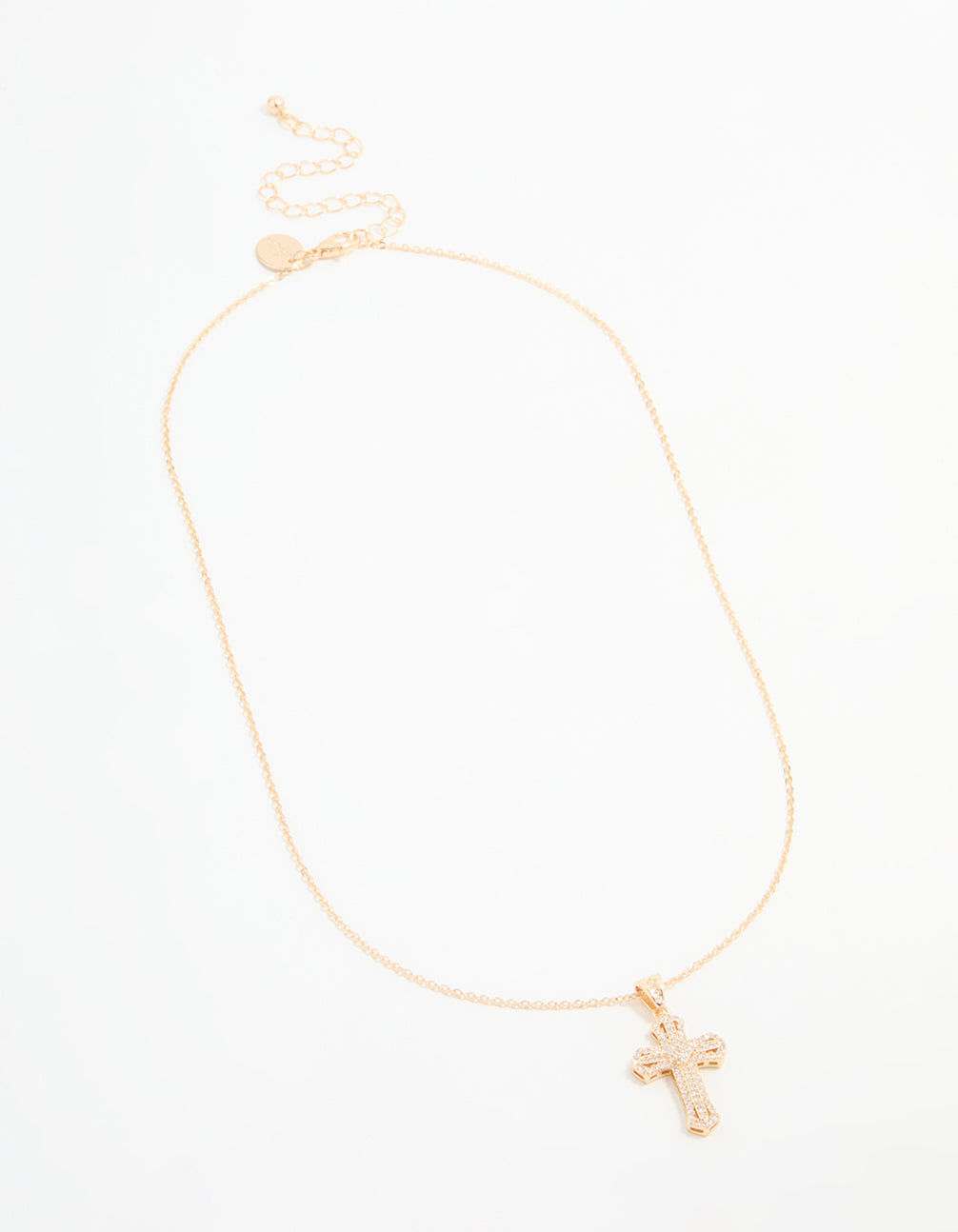Elevate your everyday style with our Gold Cubic Zirconia Mini Cross Necklace! This stunning piece features a delicate crystal cross pendant on a radiant gold toned base.