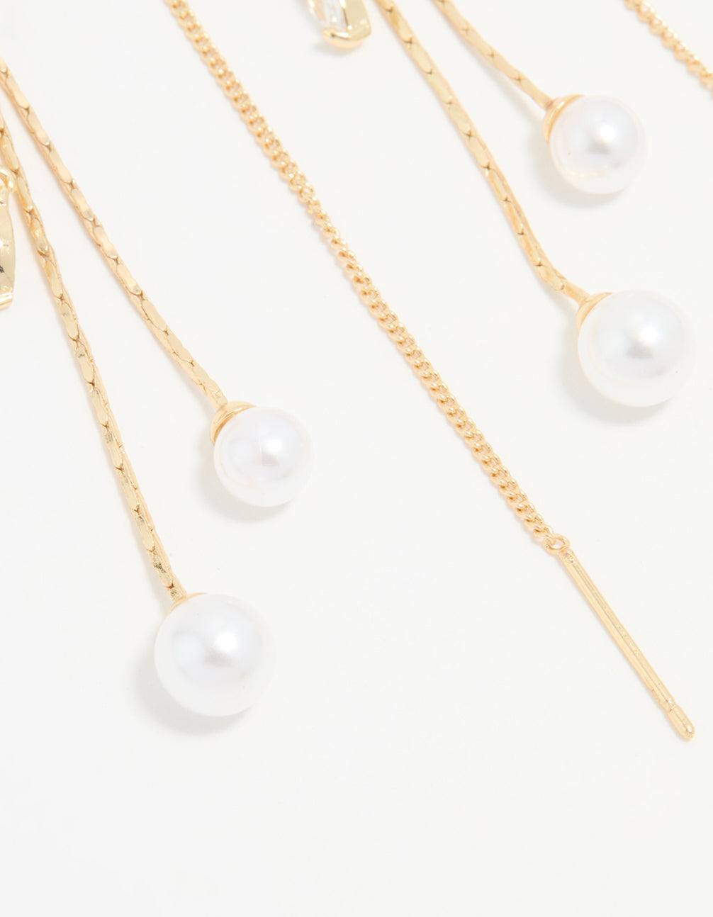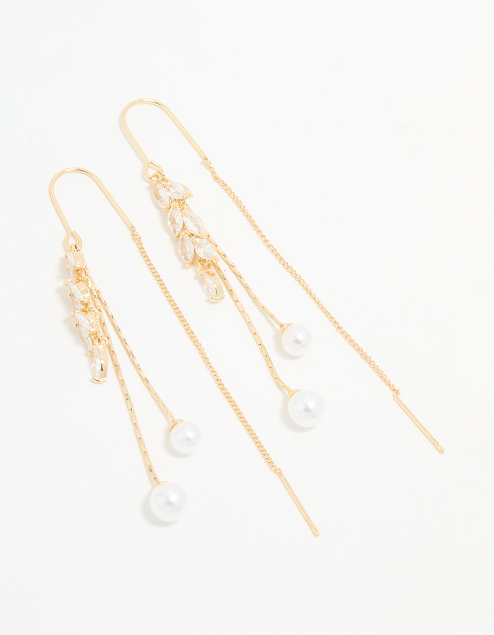 Gold Cubic Zirconia Pearl Leaf Drop Hook Earrings