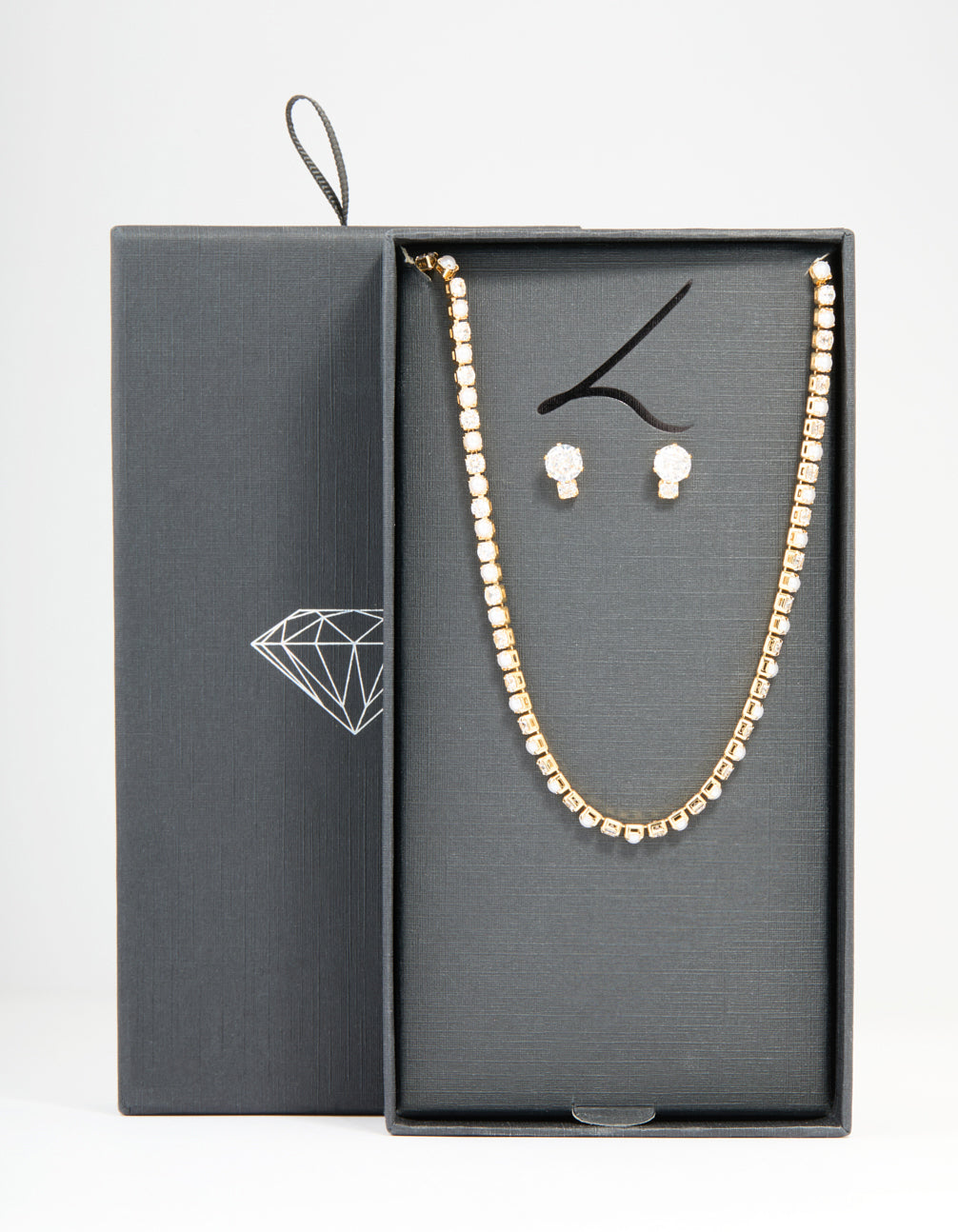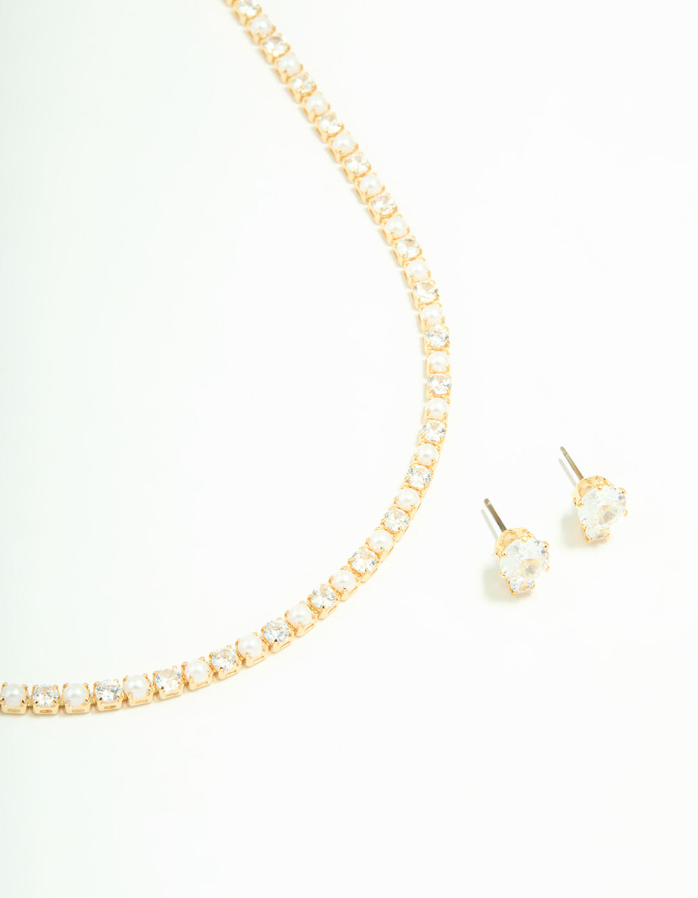 Gold Cubic Zirconia Pearl Tennis Necklace & Earrings Set