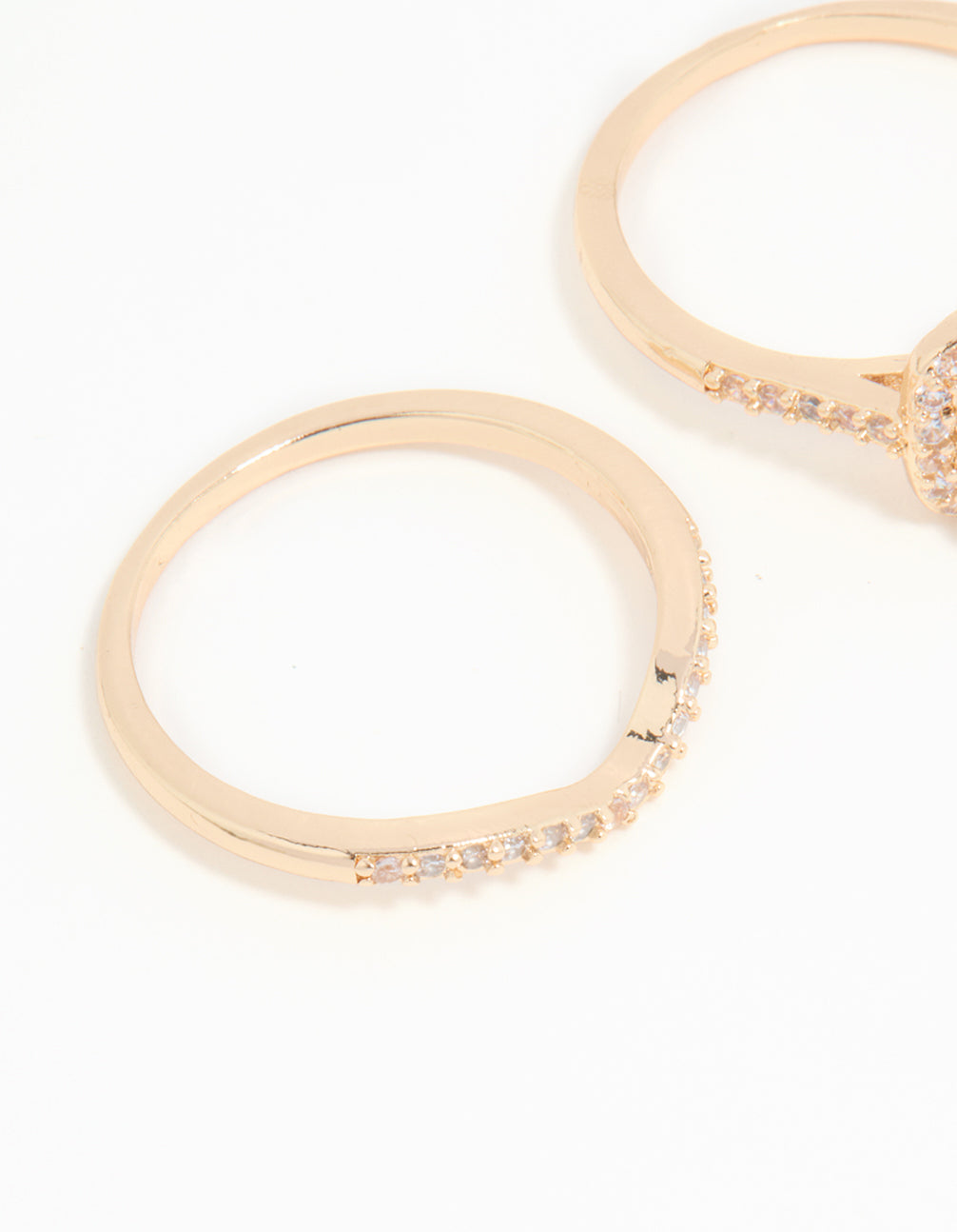 Gold Cubic Zirconia Round & Pointed Rings 3-Pack