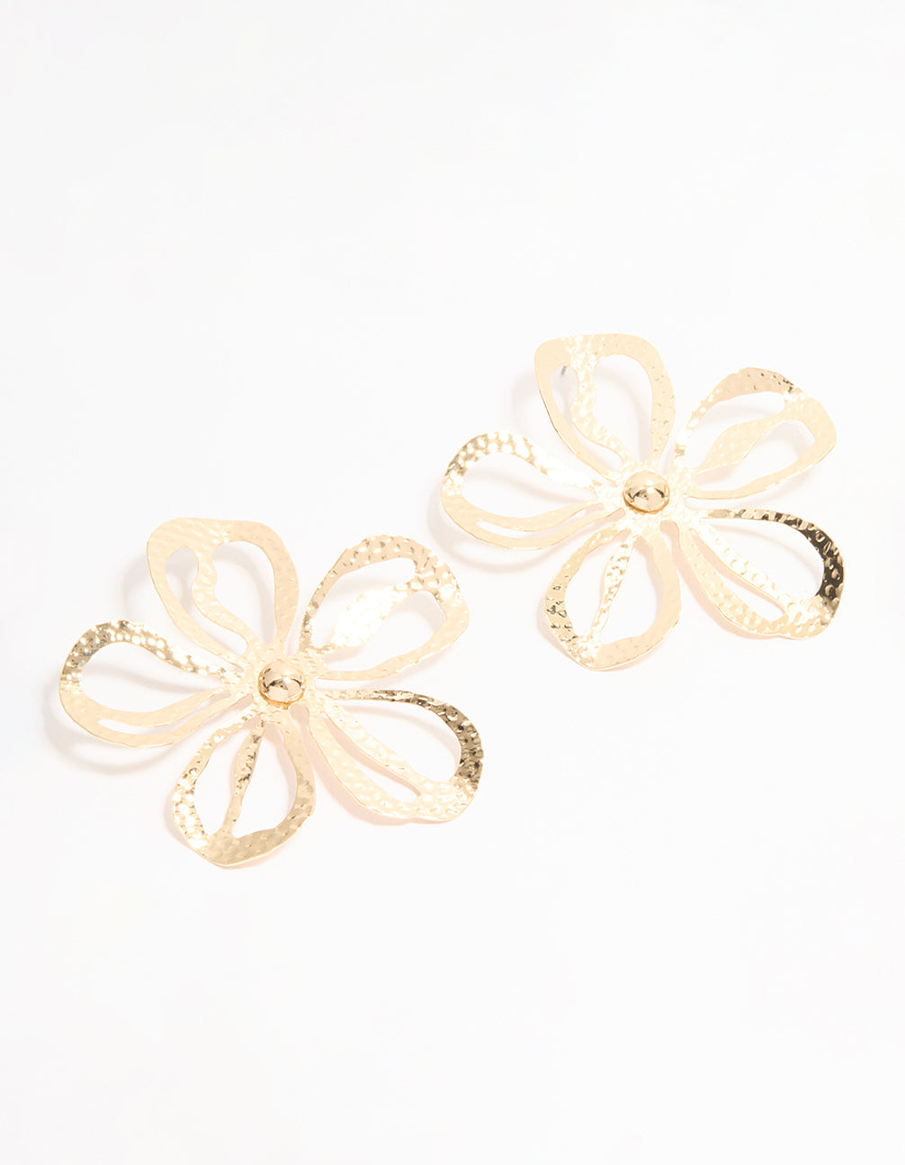 Gold Cut Out Large Flower Stud Earrings