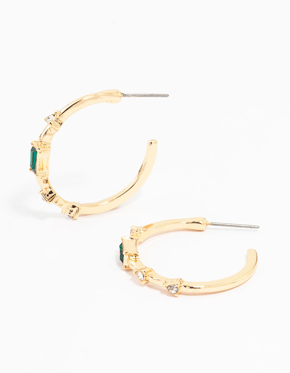 Looking to add a vibrant touch to your outfit? Introducing the Diamante Baguette Thin Hoop Earrings. Adorned with adorable green baguette-shaped diamante crystals, these earrings bring sparkle and liveliness to any look.