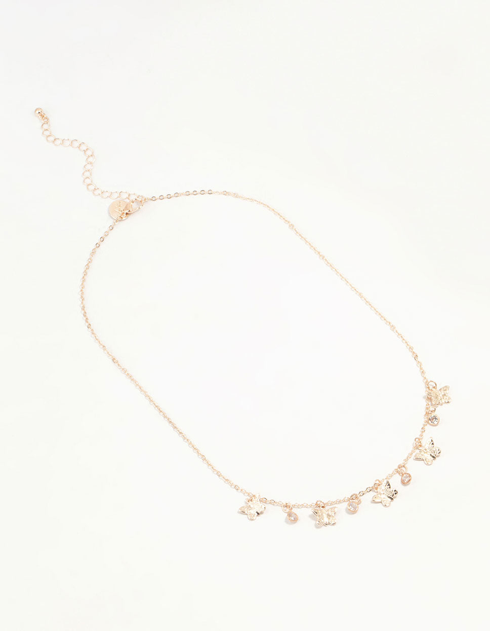 Gold Diamante Butterfly Drop Charm Necklace