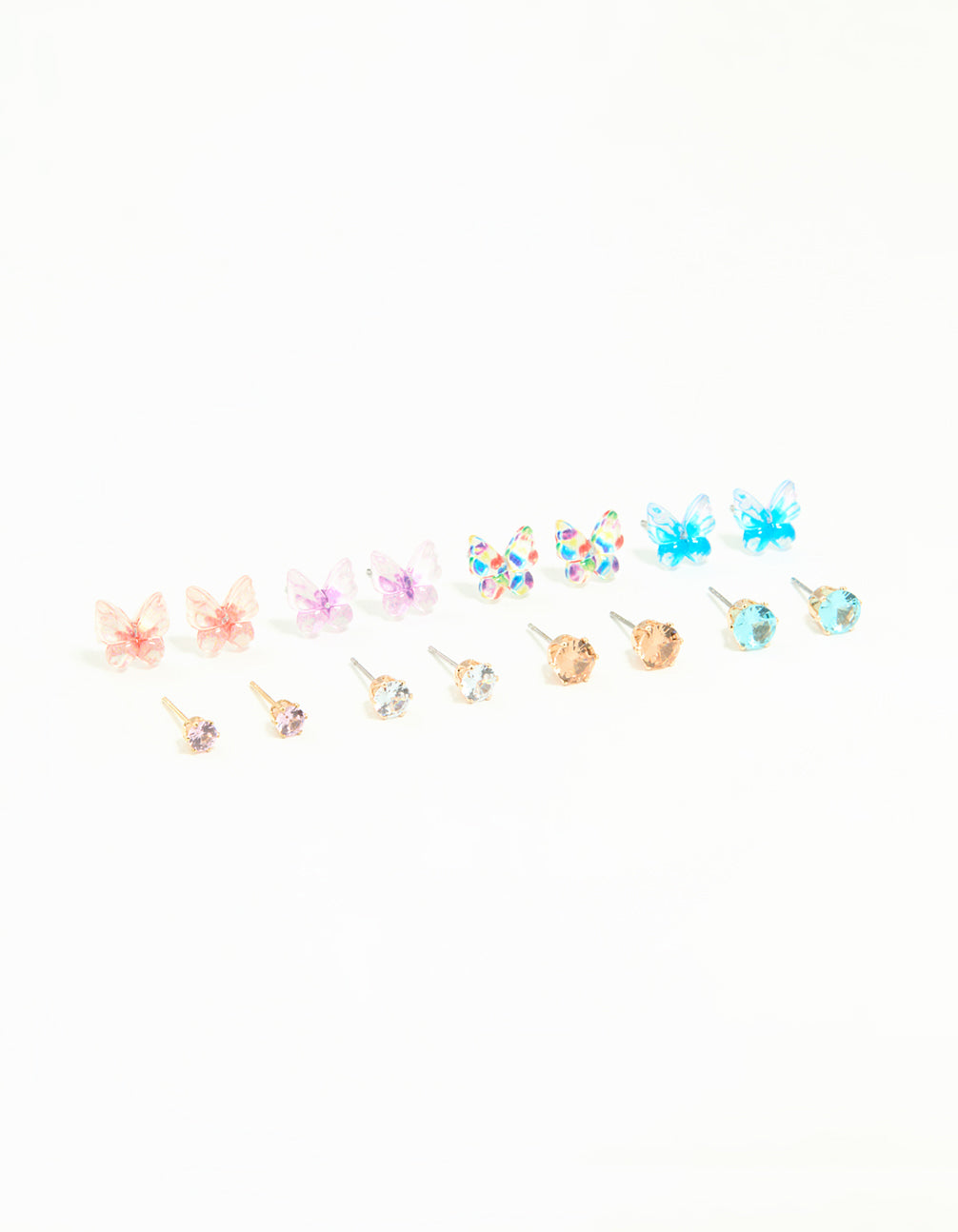 Gold Diamante & Butterfly Stud Earrings 8-Pack