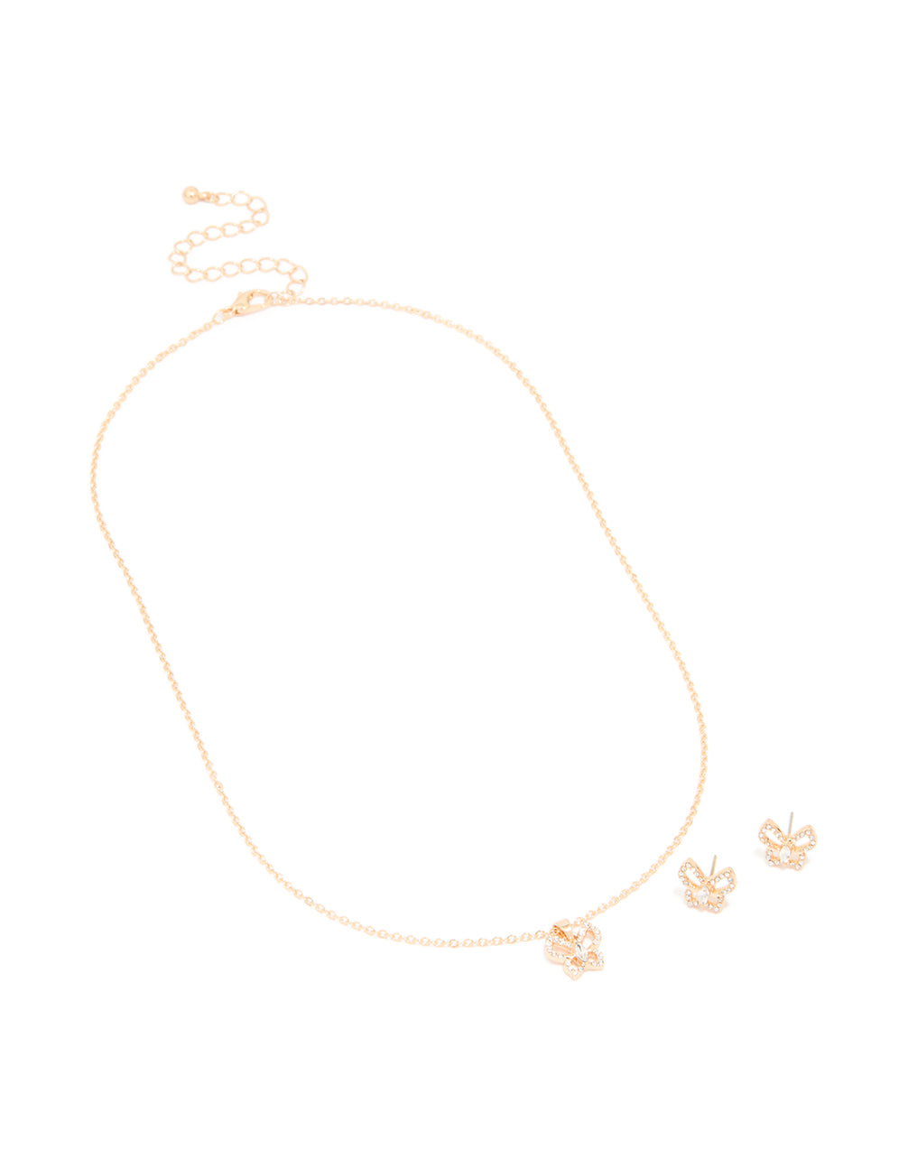 Gold Diamante Butterfly Stud Earrings & Necklace Set