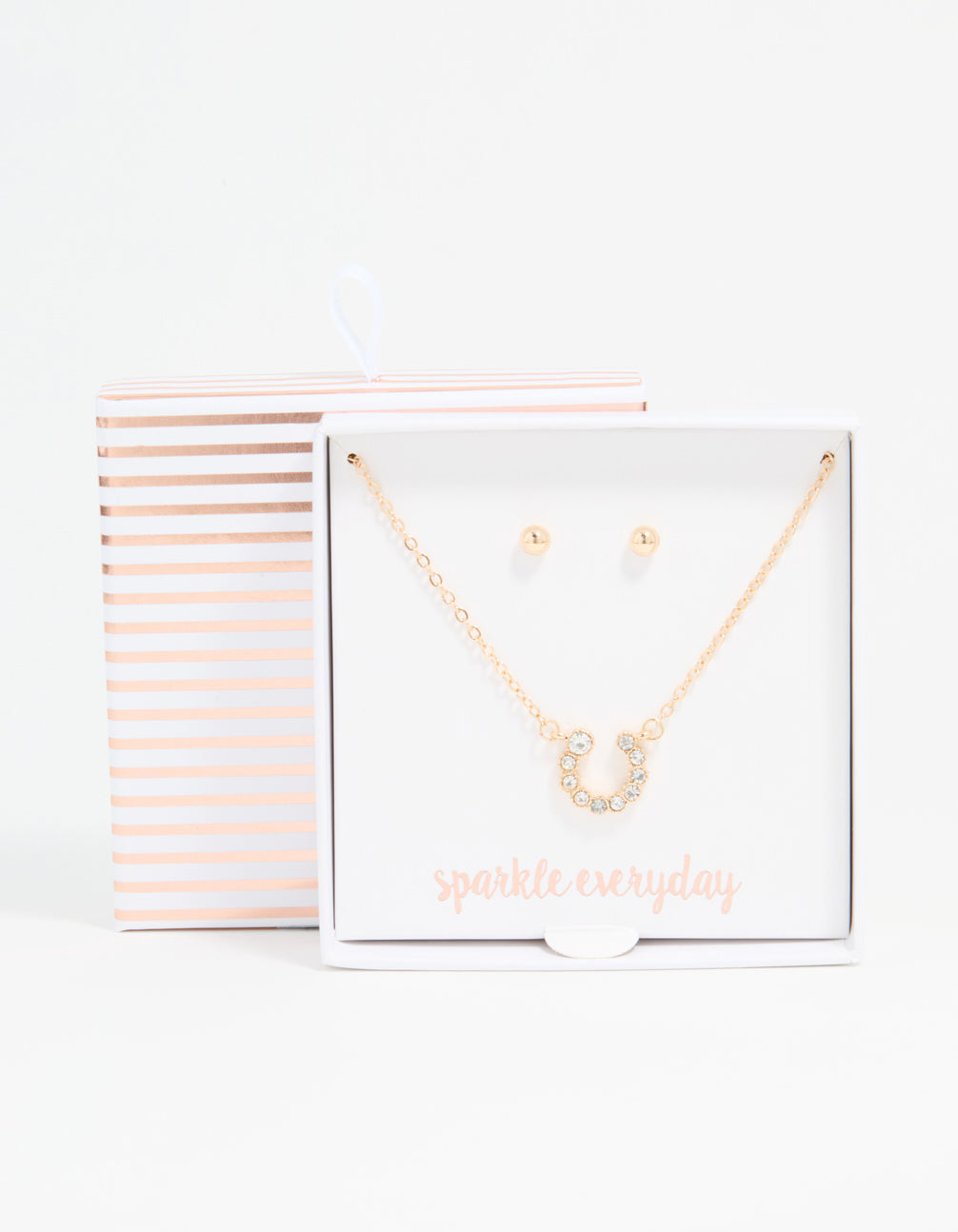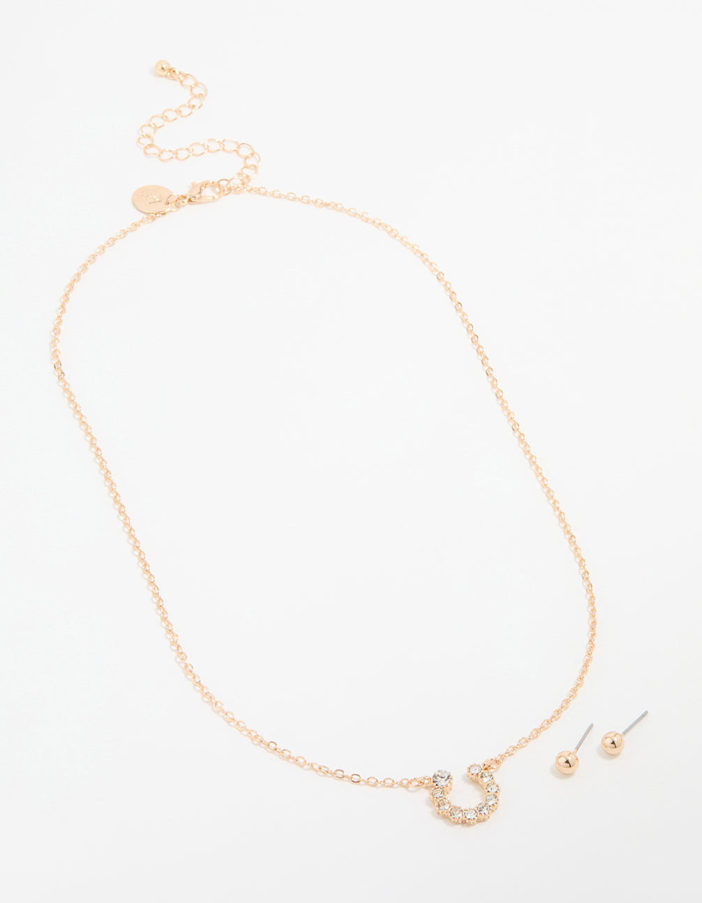 Gold Diamante Circle Necklace & Stud Earrings Set