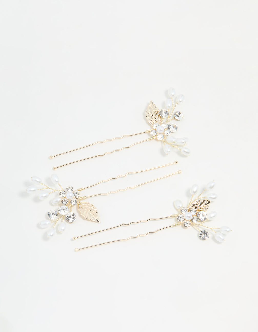 Gold Diamante Flower & Pearl Bobby Pins 3-Pack