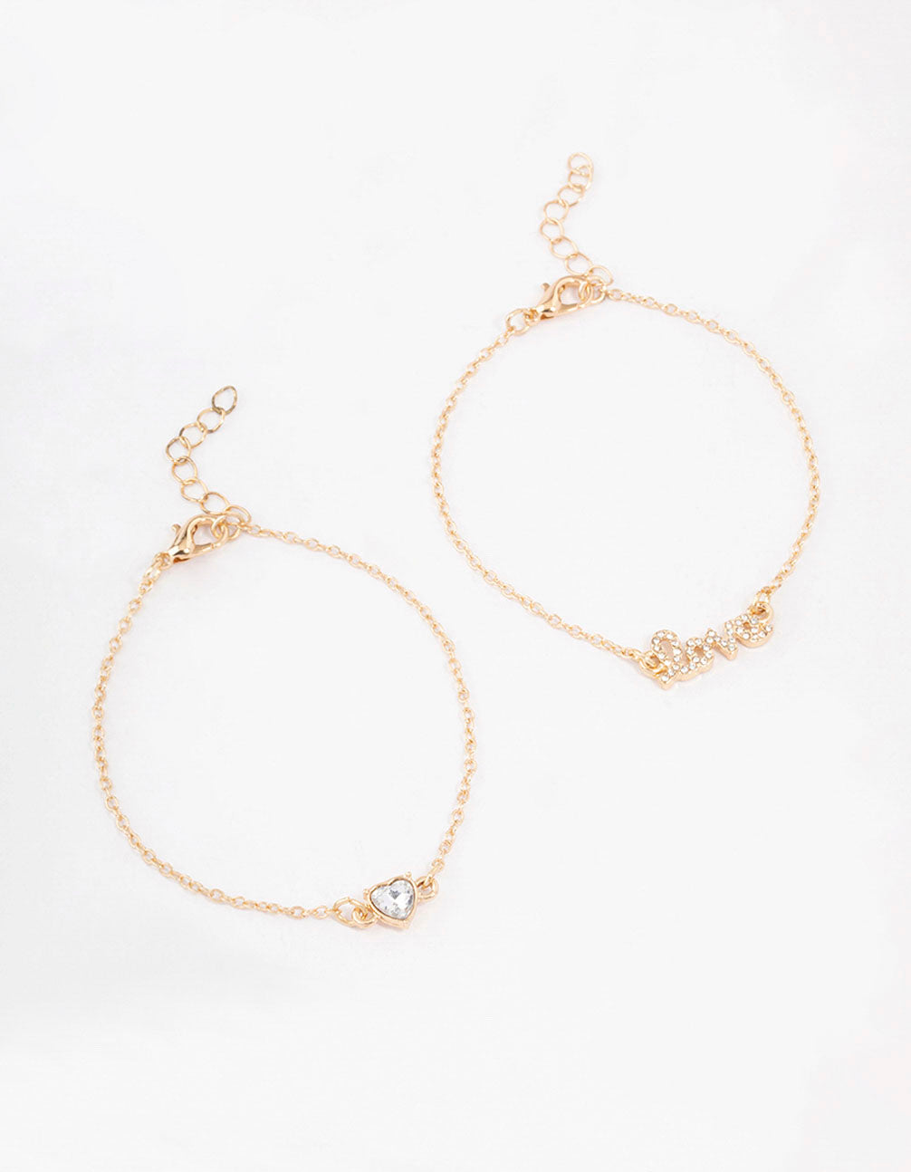 Gold Diamante Heart Love Bracelet Pack Gold Diamante Heart Love Bracelet Pack
